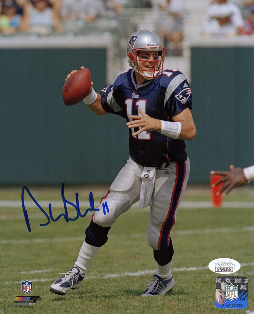 Photo measures 8” x 10” in size and has been hand-signed by Drew Bledsoe (New England Patriots).