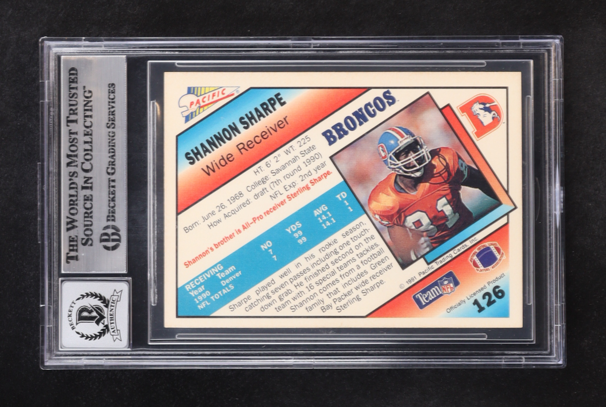 Shannon Sharpe Signed 1991 Pacific #126 RC (BGS | Autograph Graded BGS 10)