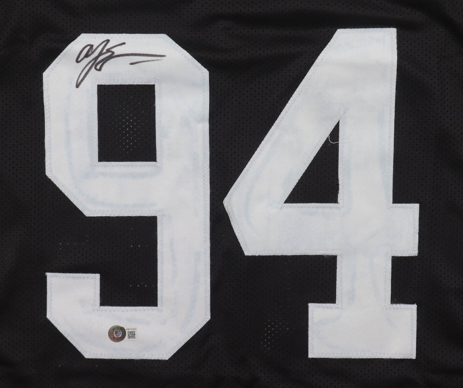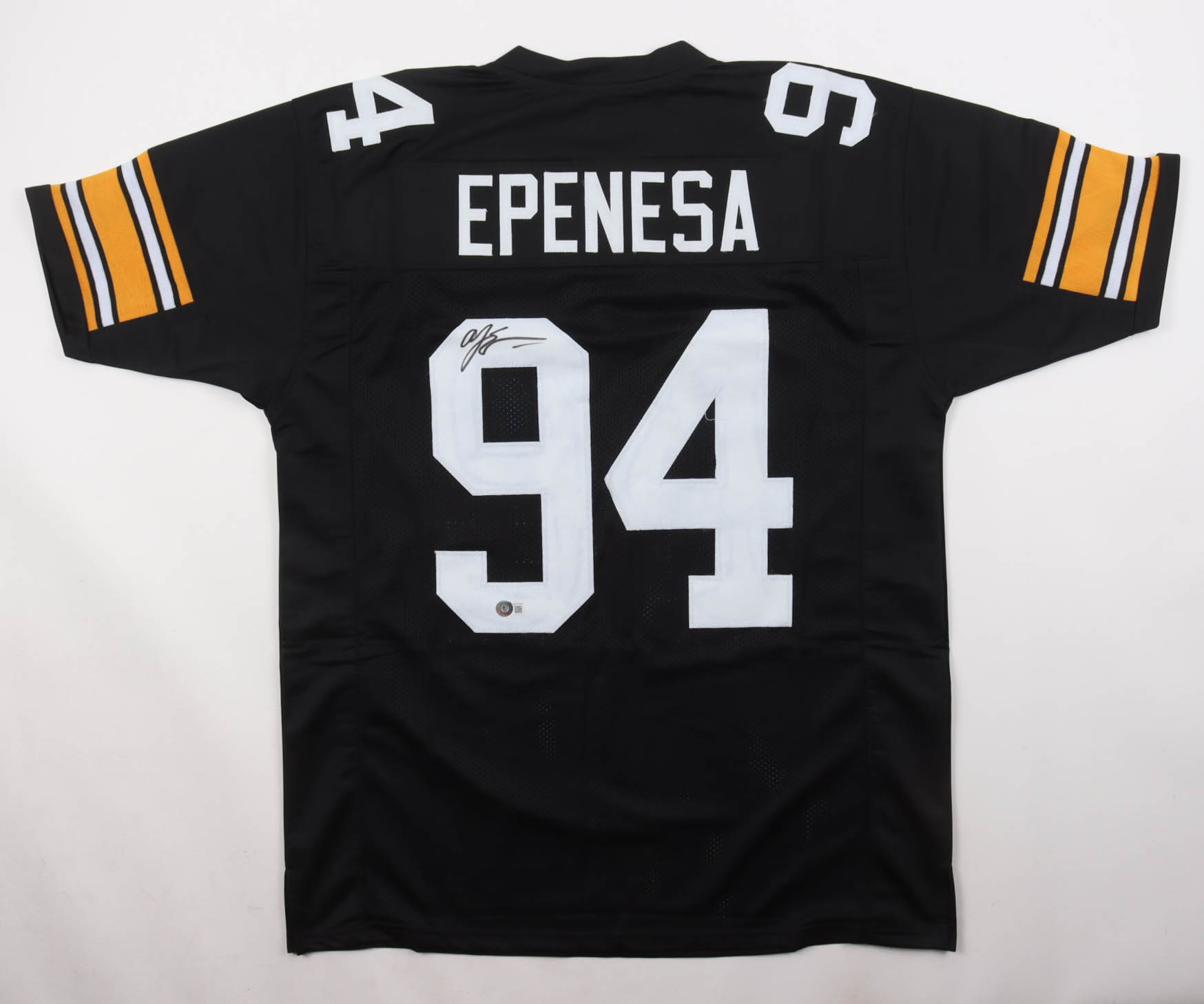 Custom jersey with everything sewn on, size XL. Hand-signed by A.J. Epenesa. Please note, glue is visible through the jersey numbers. See photos regarding the condition of the item.