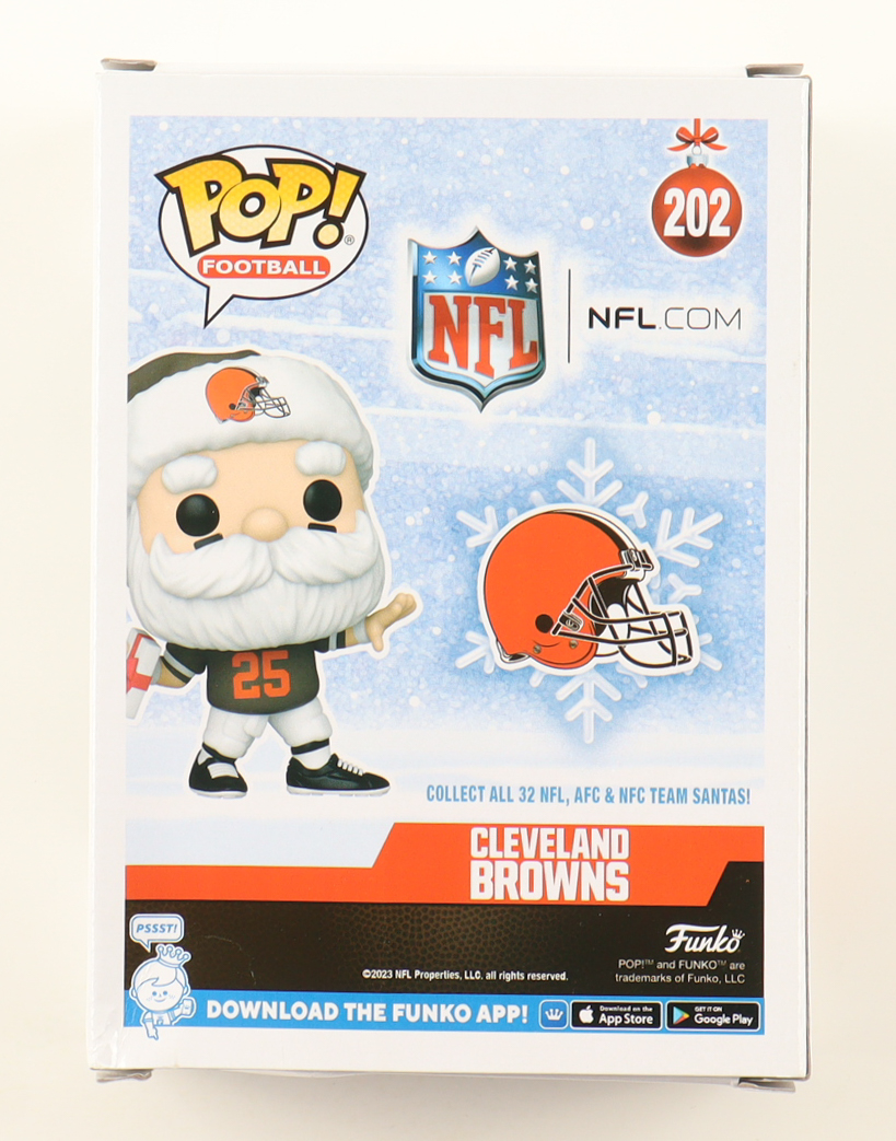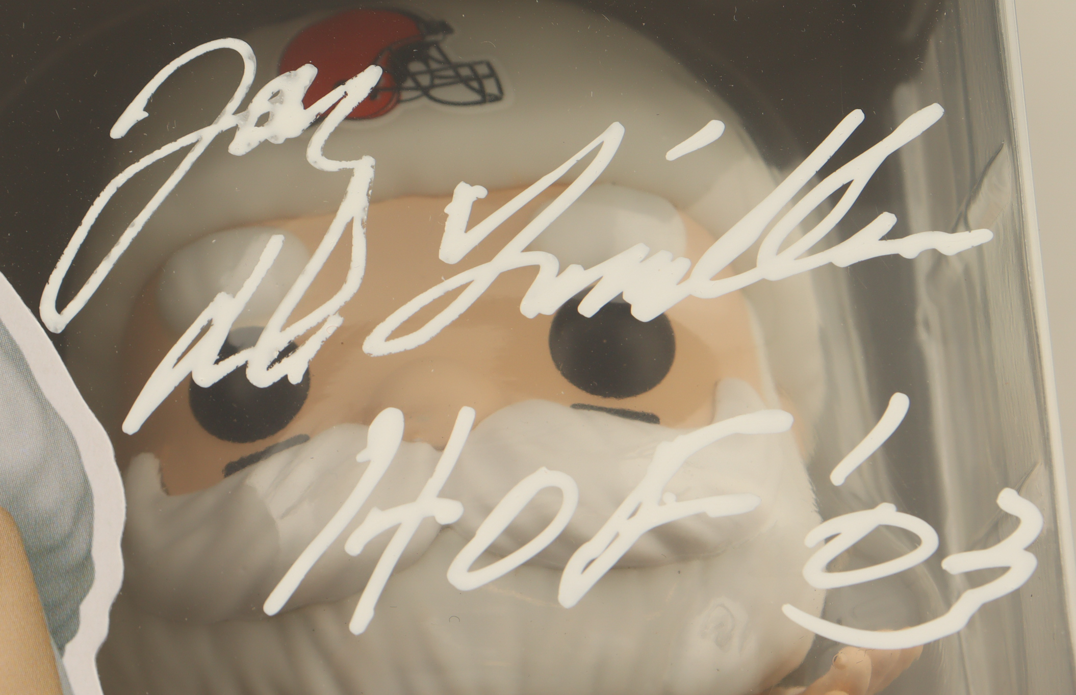 Funko Pop! vinyl figure measures approximately 4" tall. Hand-signed and inscribed on the packaging by Joe Thomas (Cleveland Browns, HOF). Please note, packaging shows signs of damage near the rear bottom corner.