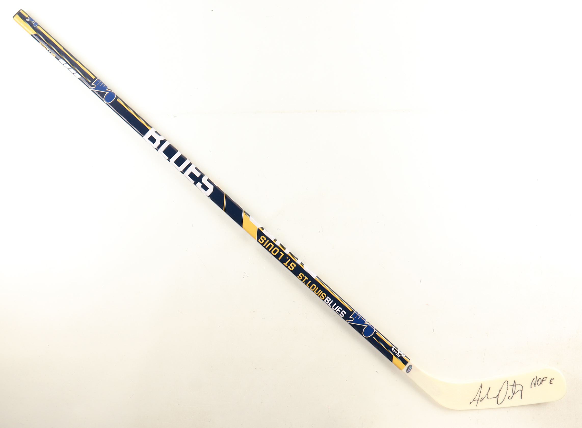 Franklin St. Louis Blues 48" hockey stick has been hand-signed and inscribed by Adam Oates (HOF).