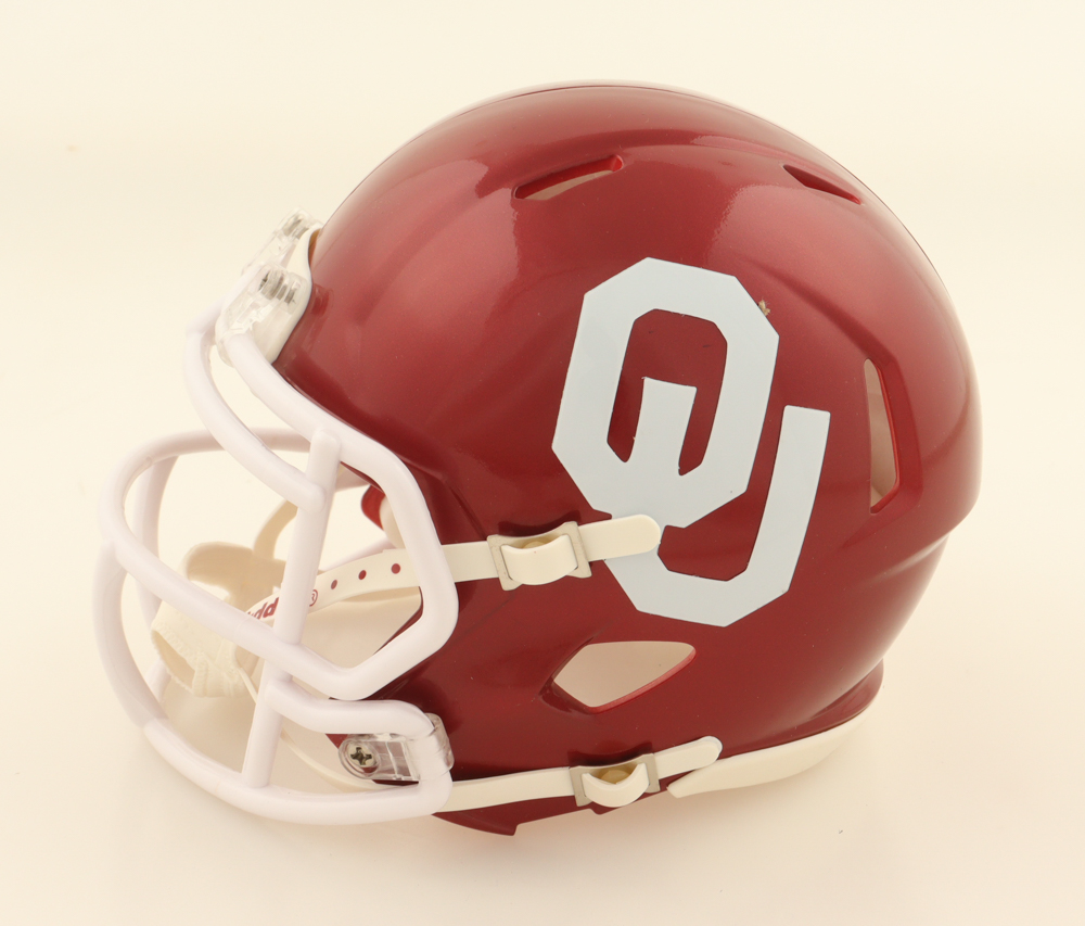 Riddell Oklahoma Sooners speed mini helmet has been hand-signed by Baker Mayfield.