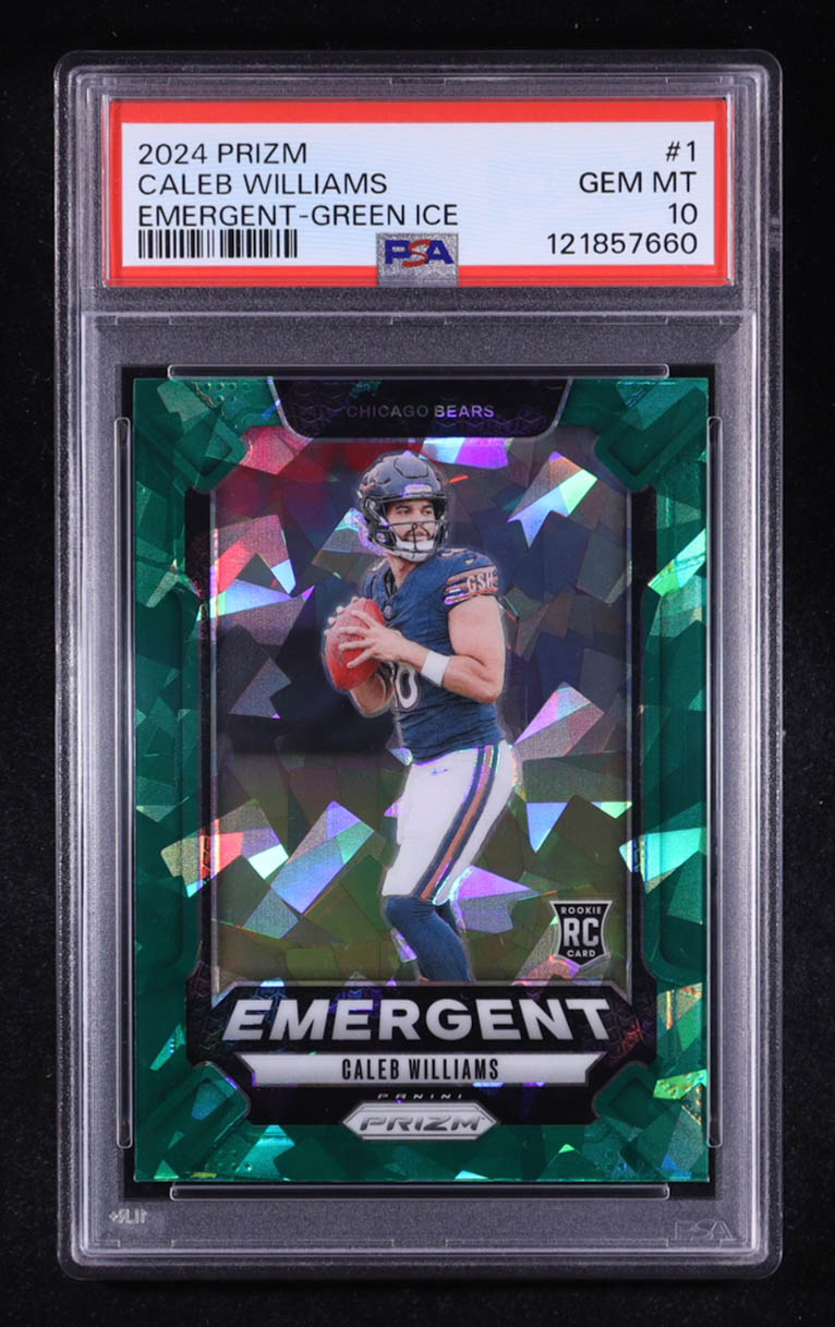 Caleb Williams 2024 Panini Prizm Emergent Prizms Green Ice #1 RC (PSA 10)