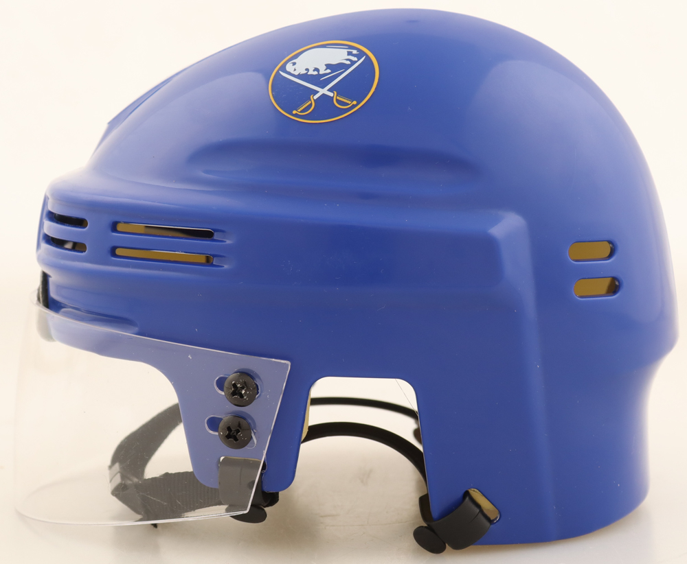 Buffalo Sabres mini helmet has been hand-signed and inscribed by Gilbert Perreault (HOF).