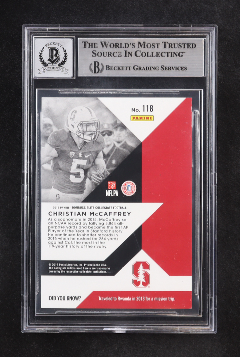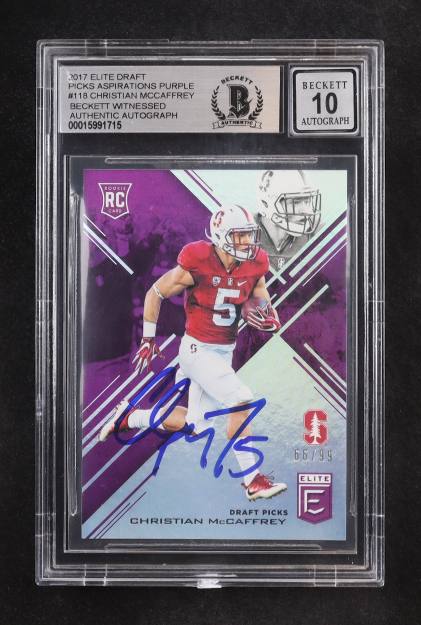 Christian McCaffrey Signed 2017 Elite Draft Picks Aspirations Purple #118 RC #66/99 (BGS | Autograph Graded BGS 10)