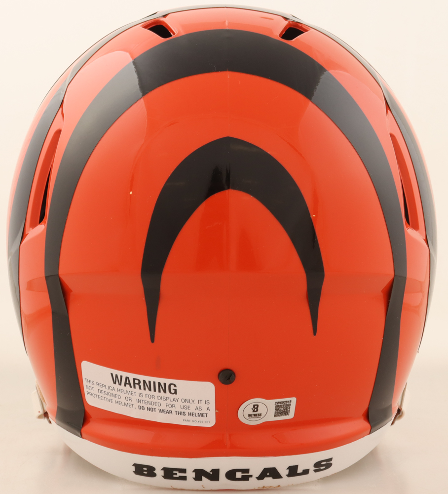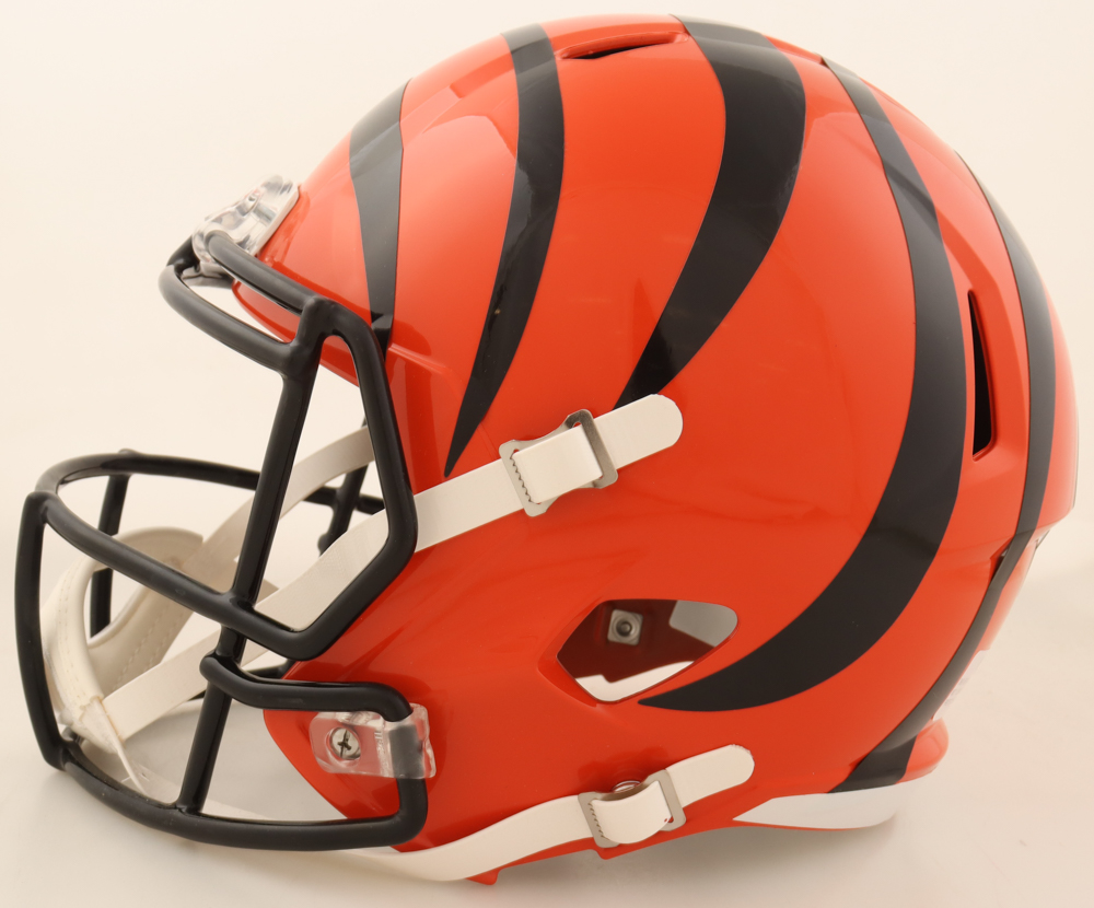 Riddell Cincinnati Bengals full-size speed replica helmet. Hand-signed and inscribed by Logan Wilson.