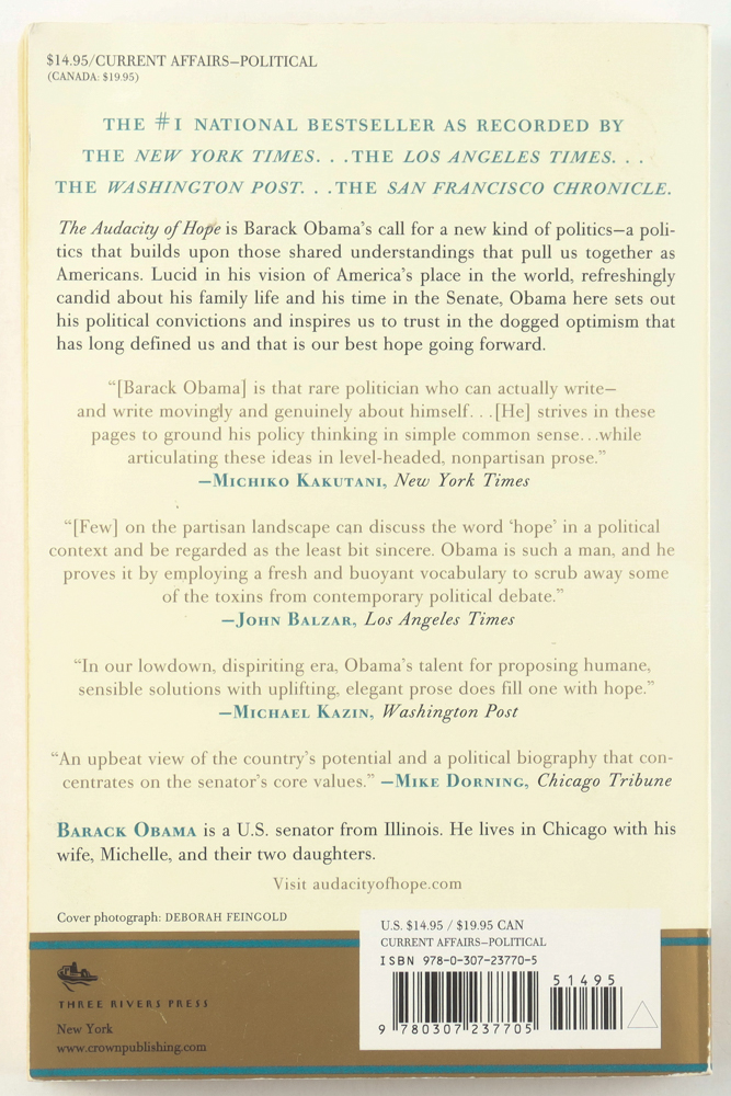 Barack Obama Signed "The Audacity of Hope" Paperback Book (Beckett)