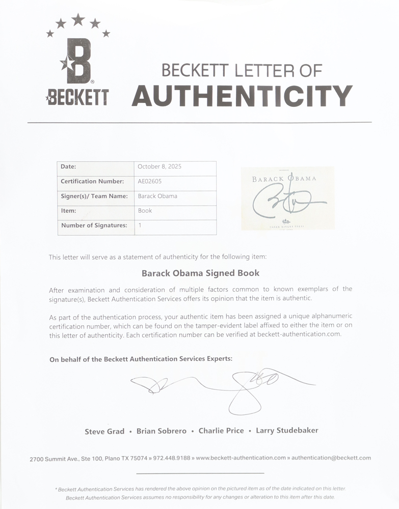 Softcover book has been hand-signed on the inside title page by Barack Obama.