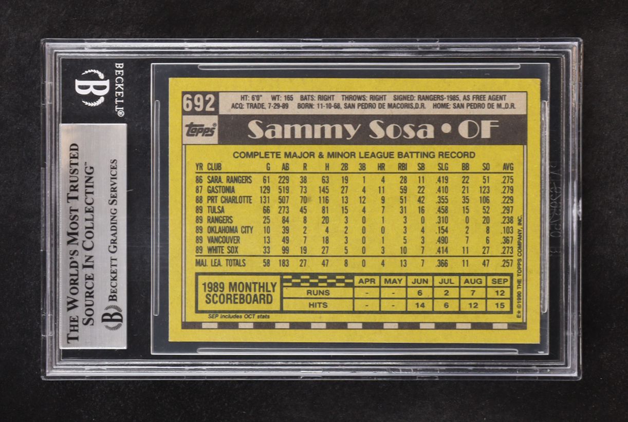 Sammy Sosa Signed 1990 Topps #692 RC (BGS)