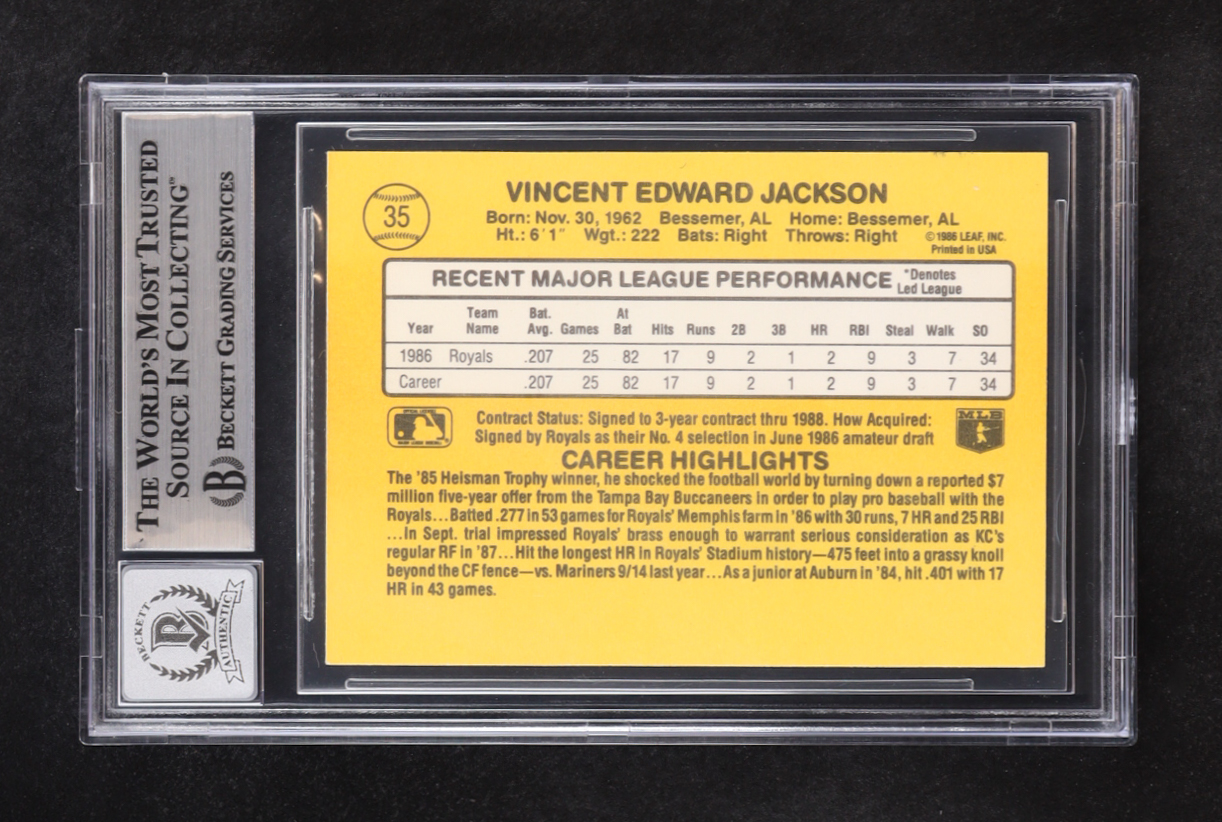 Bo Jackson Signed 1987 Donruss #35 RC (BGS | Autograph Graded BGS 10)