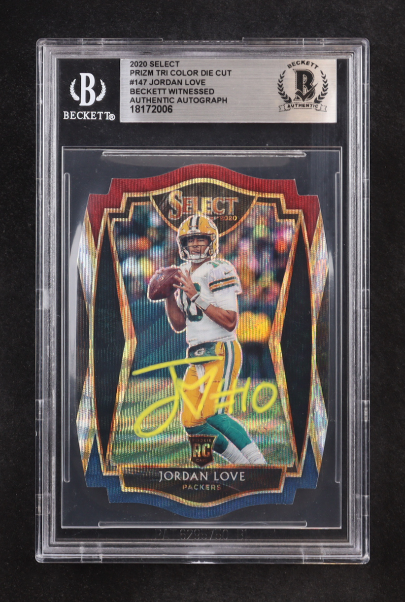 Jordan Love Signed 2020 Inscribed "#10" Panini Select Tri Color Die Cut Prizm #147 RC (BGS)