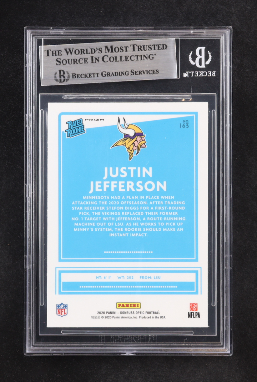 Justin Jefferson Signed 2020 Donruss Optic Rated Rookie Prizm Holo #163 RC (BGS)