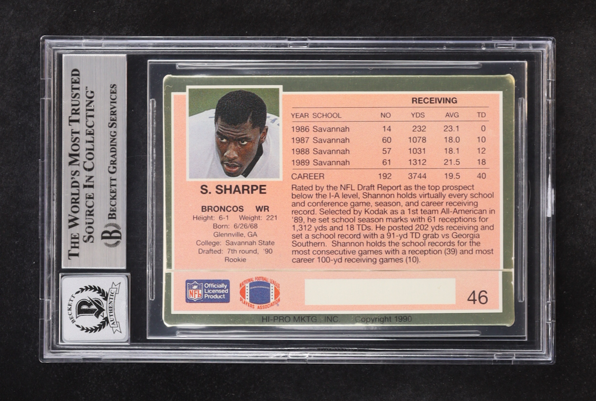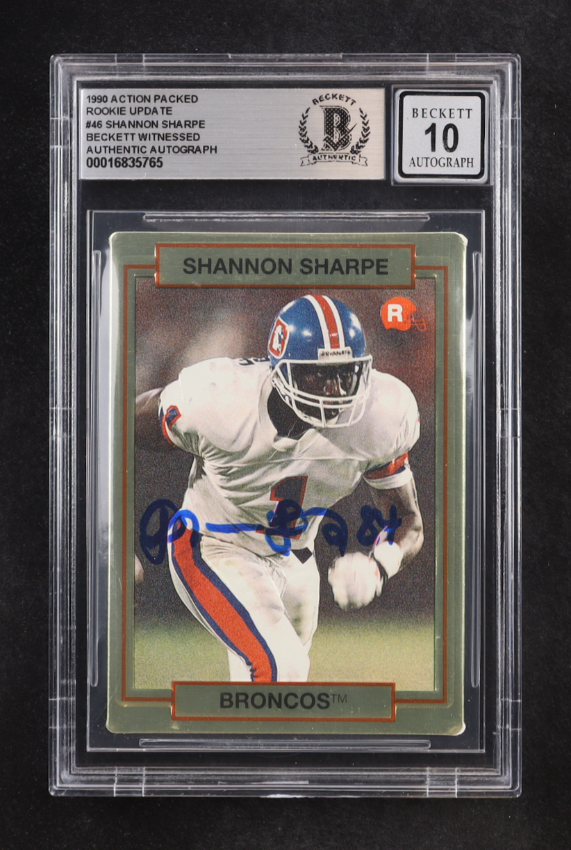 Shannon Sharpe Signed 1990 Action Packed Rookie Update #46 RC (BGS | Autograph Graded BGS 10)