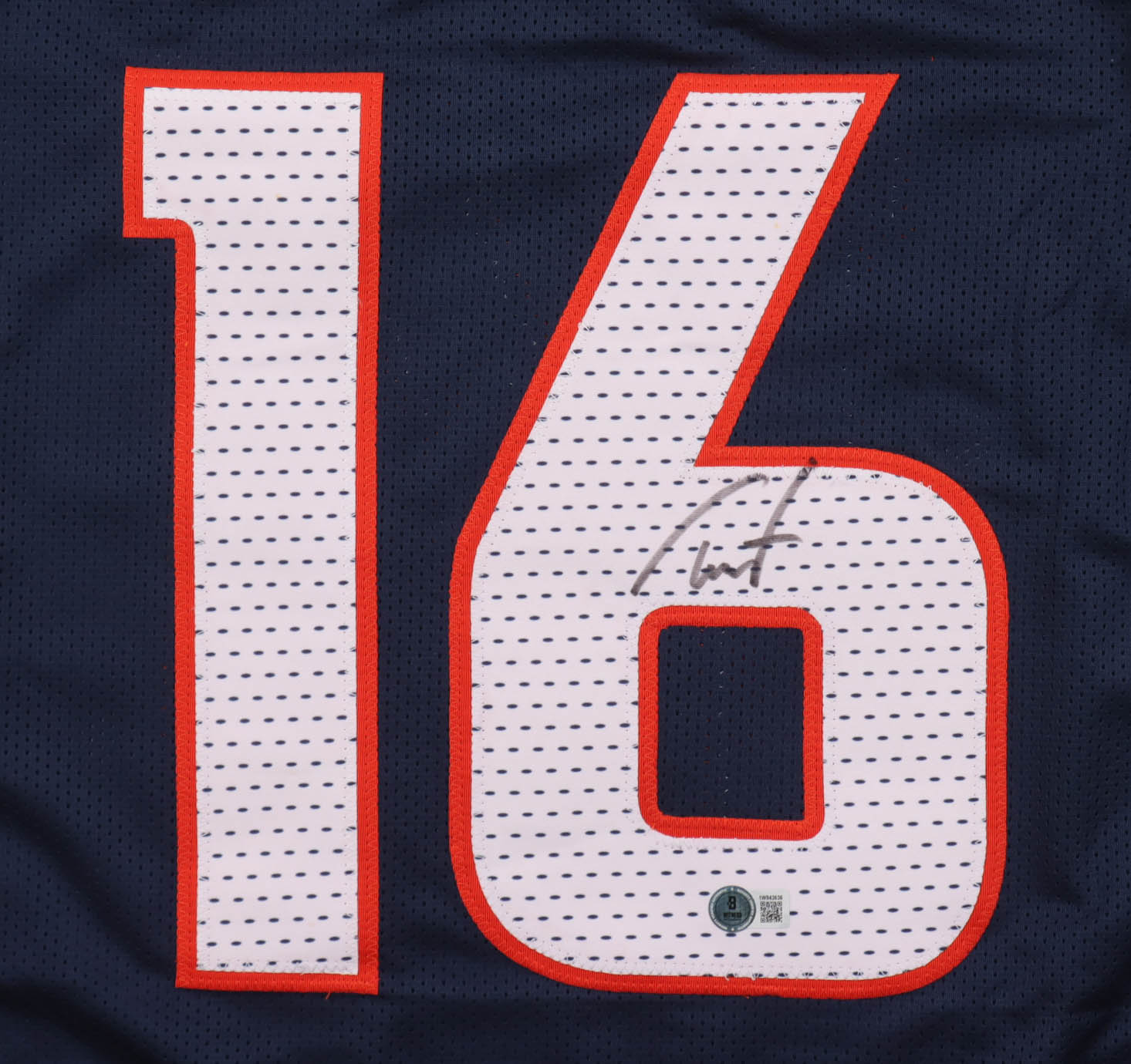 Custom jersey, everything sewn on, size XL. Hand-signed by Troy Franklin.