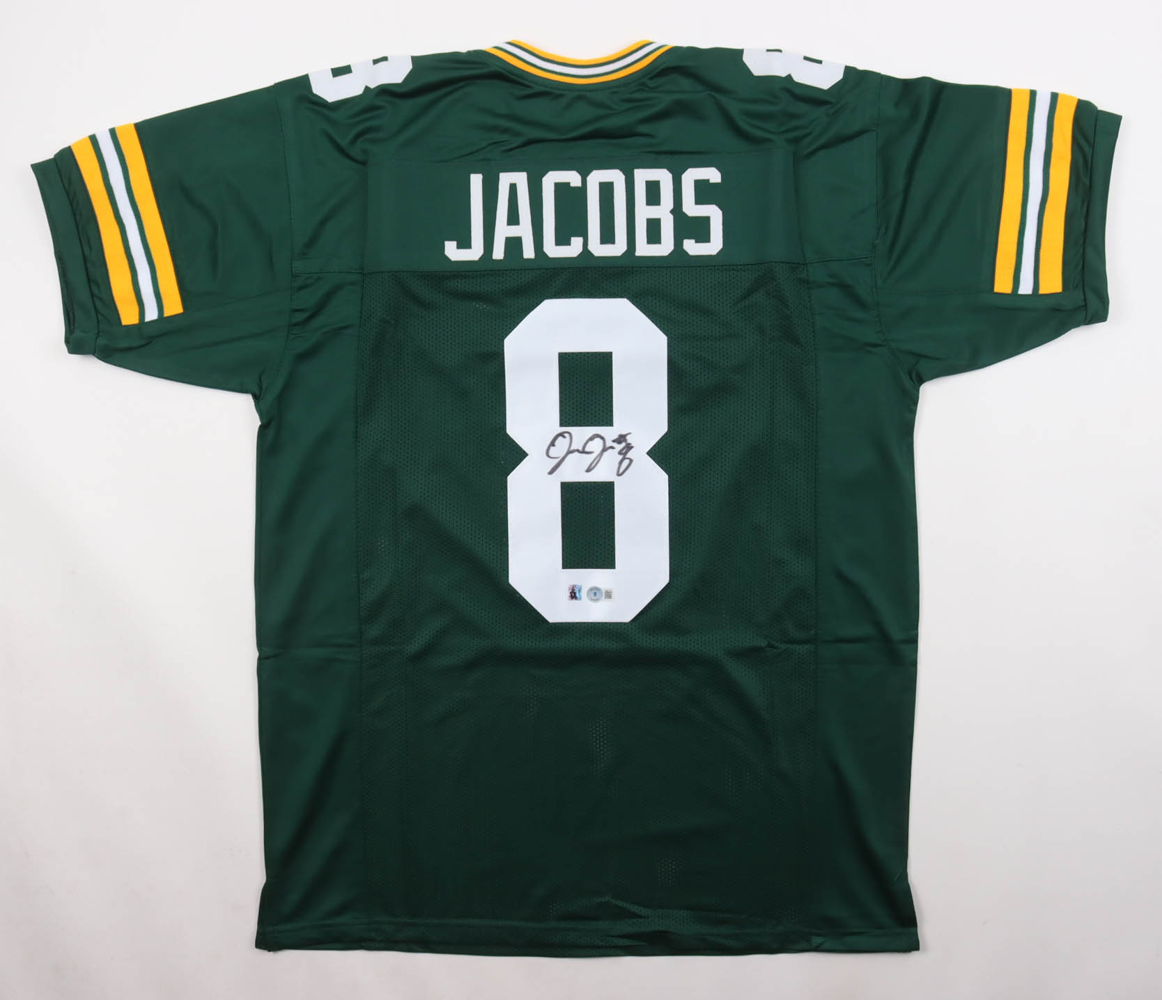 Custom jersey with everything sewn on, size XL. Hand-signed by Josh Jacobs (Green Bay Packers).
