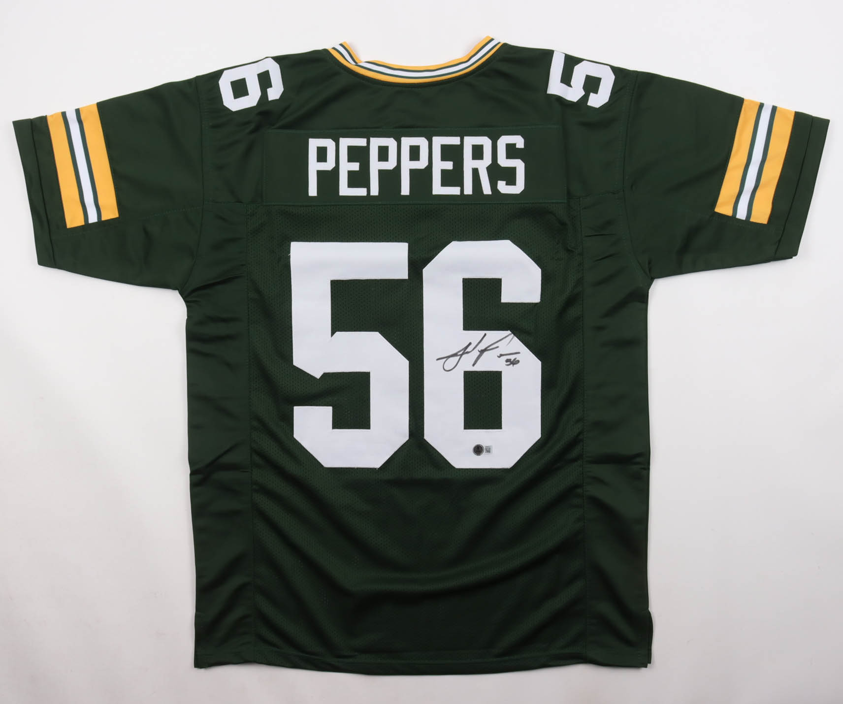 Custom jersey with everything sewn on, size XL. Hand-signed by Julius Peppers (HOF).