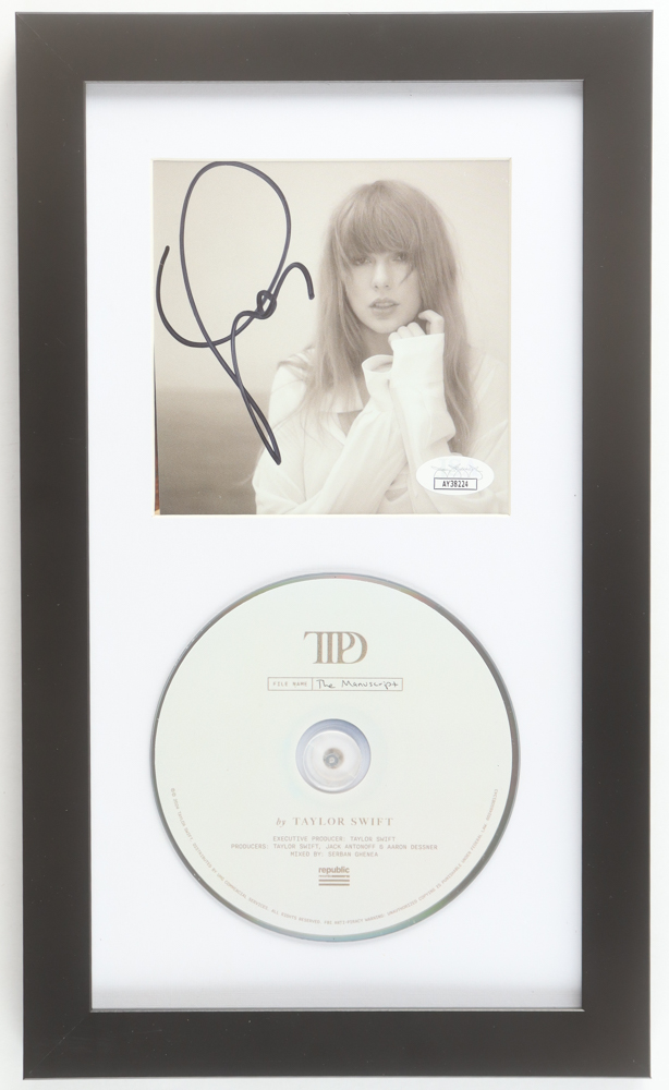 Matted insert display measures approximately 8.5" x 14" in size. Features a CD insert that has been hand-signed by Taylor Swift. Please note, the CD is included and there is slight scuffing on the frame.