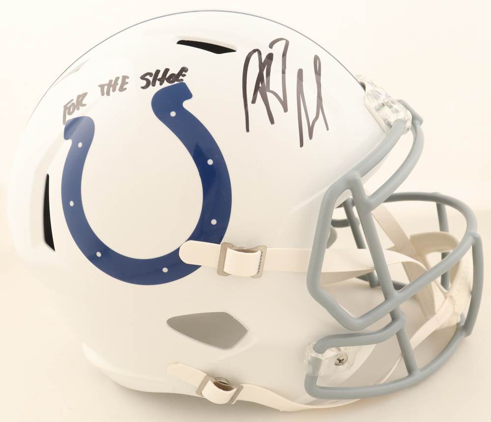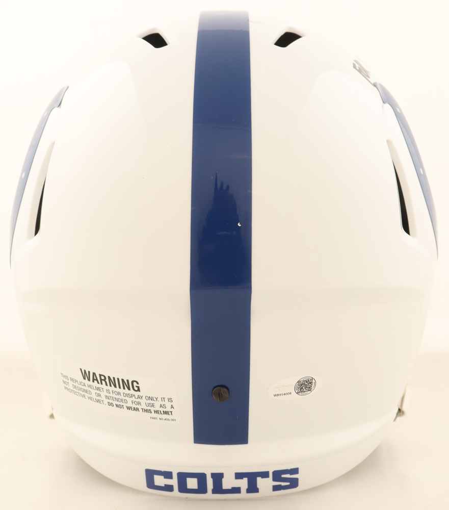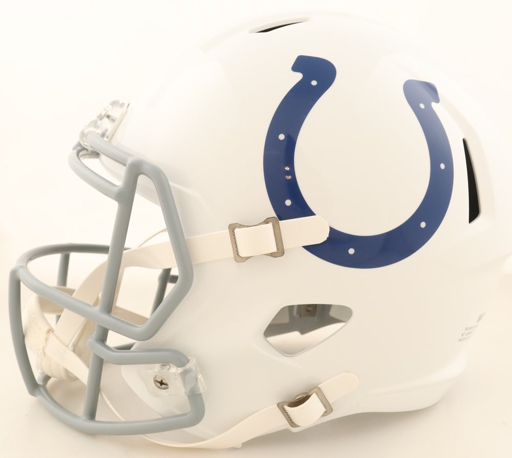 Riddell Indianapolis Colts full-size replica Speed helmet. Hand-signed and inscribed by Riley Leonard.