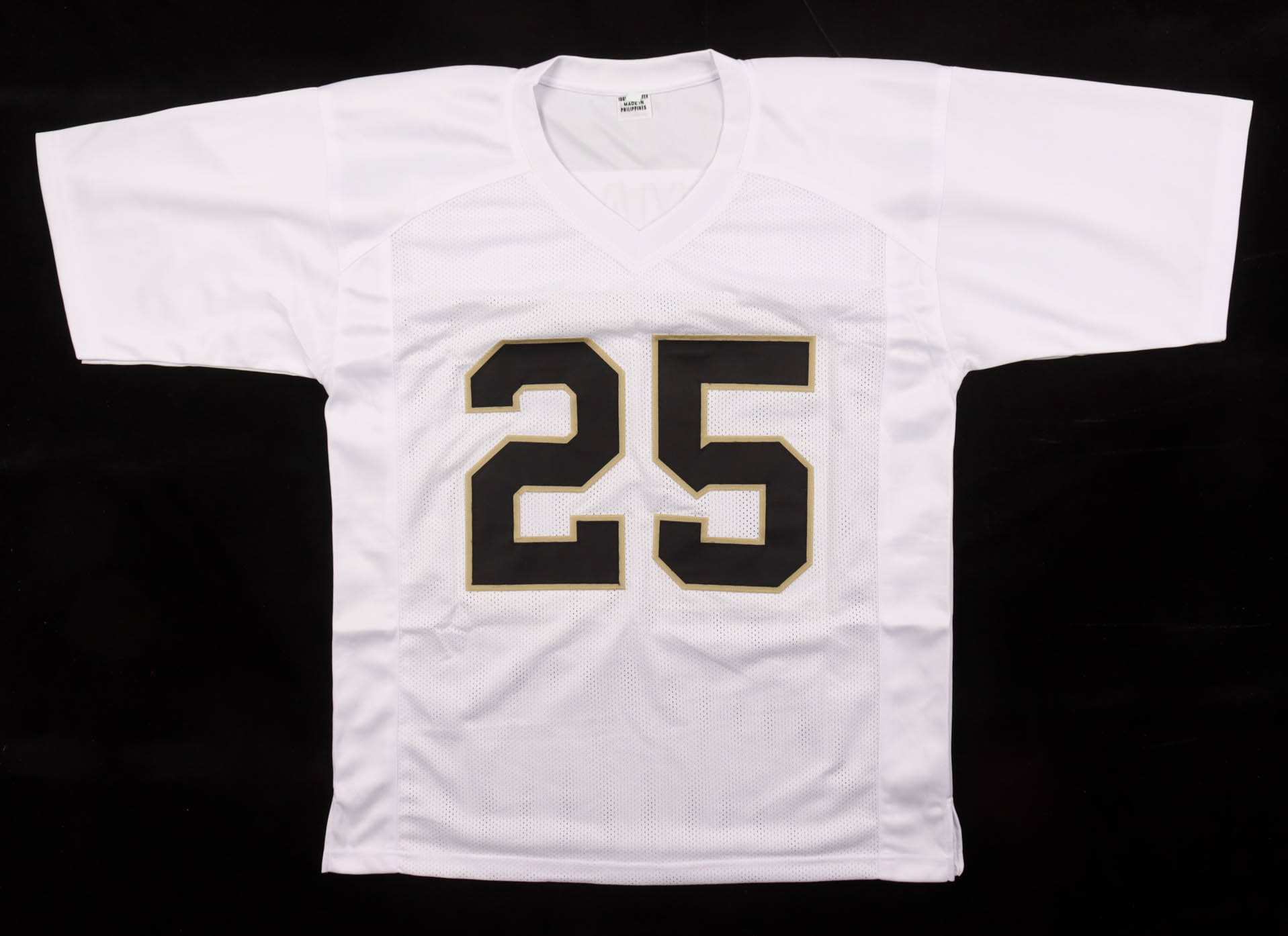 Custom jersey with everything sewn on, size XL. Hand-signed and inscribed by Raghib "Rocket" Ismail. Please note, glue is visible through the jersey numbers.