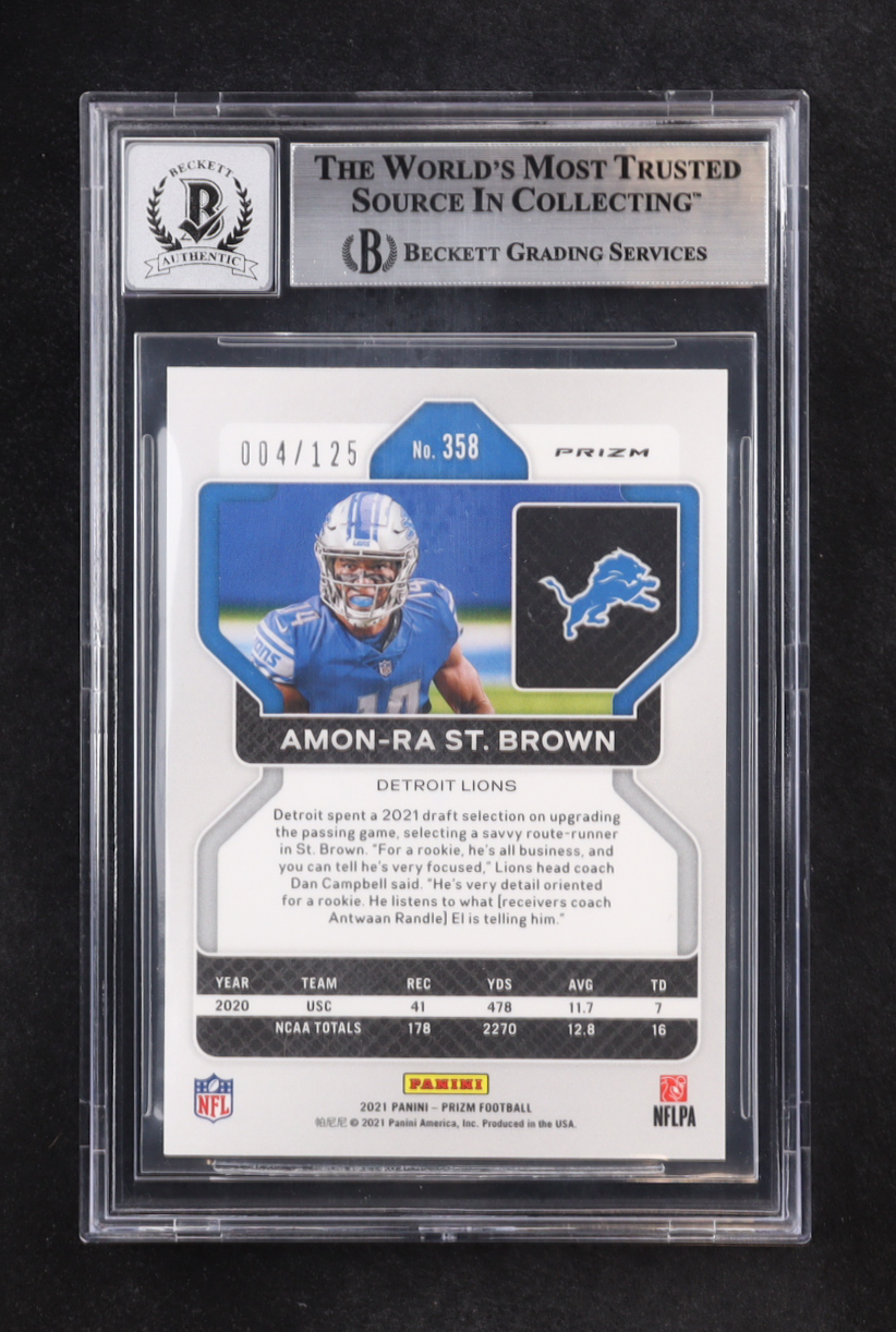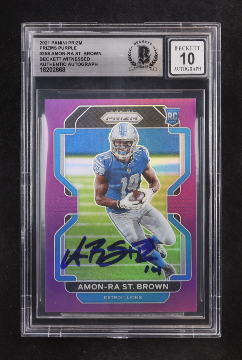 Amon-Ra St. Brown Signed 2021 Panini Prizm Purple #358 RC #004/125 (BGS | Autograph Graded BGS 10)