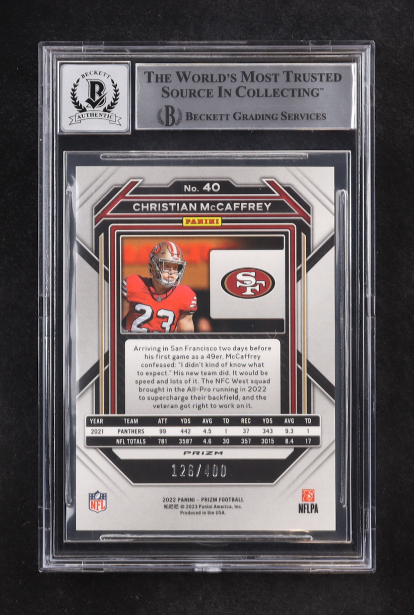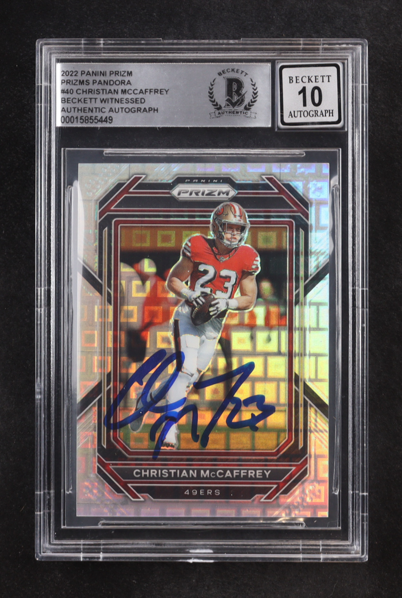 Christian McCaffrey Signed 2022 Panini Prizm Pandora #40 #126/400 (BGS | Autograph Graded BGS 10)