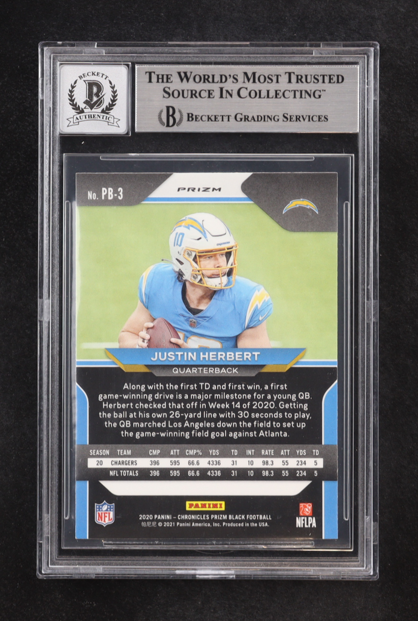 Justin Herbert Signed 2020 Inscribed "2020 NFL OROY" Panini Prizm Black Silver #PB-3 RC (BGS | Autograph Graded BGS 10)