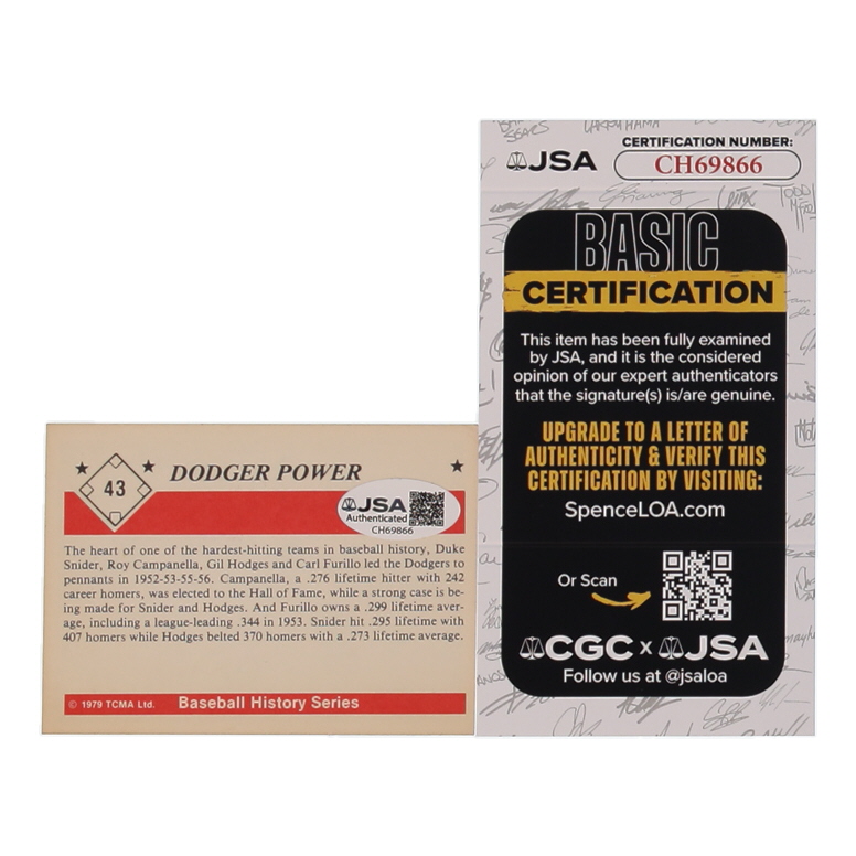Duke Snider & Carl Furillo Signed 1979 Dodger Power TCMA 50'S #43 (JSA)