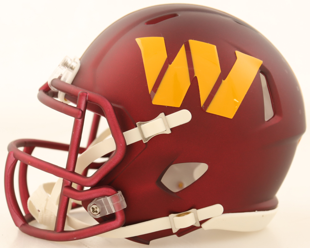 Riddell Washington Commanders speed mini helmet. Hand-signed by Dan Quinn.