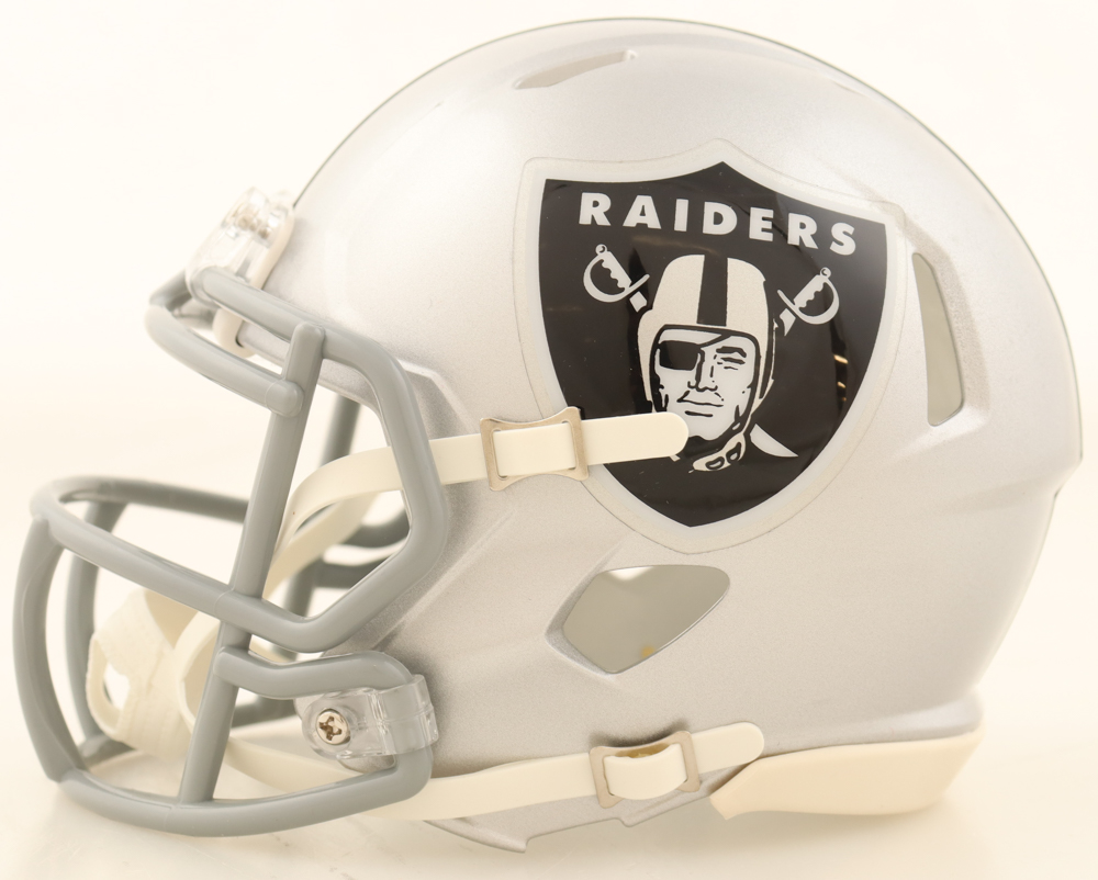 Riddell Oakland Raiders Speed mini helmet. Hand-signed by Pete Carroll. Please note, the signature is slightly smudged.