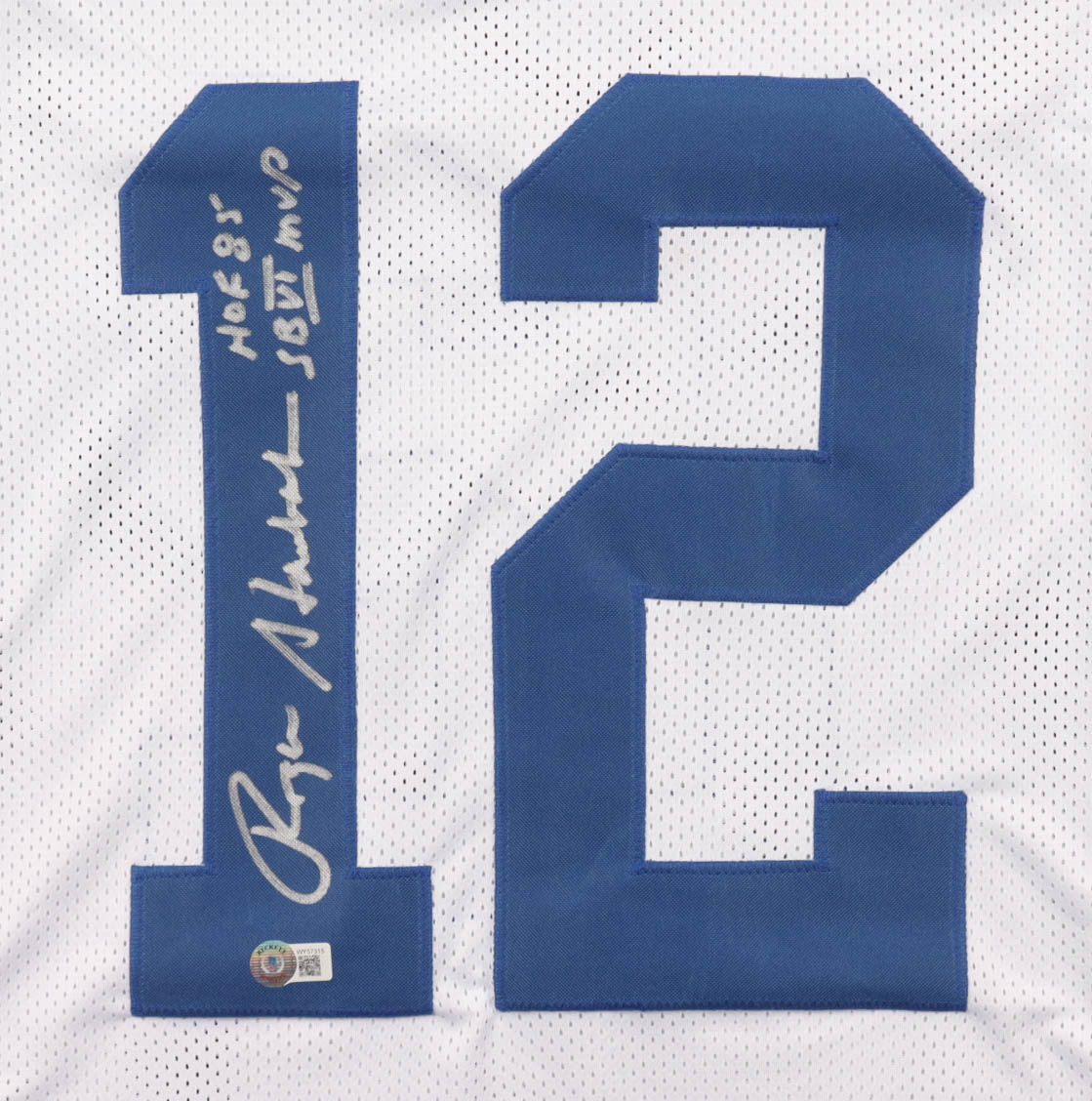 Roger Staubach Signed Jersey Inscribed "HOF 85" & "SB VI MVP" (Beckett)