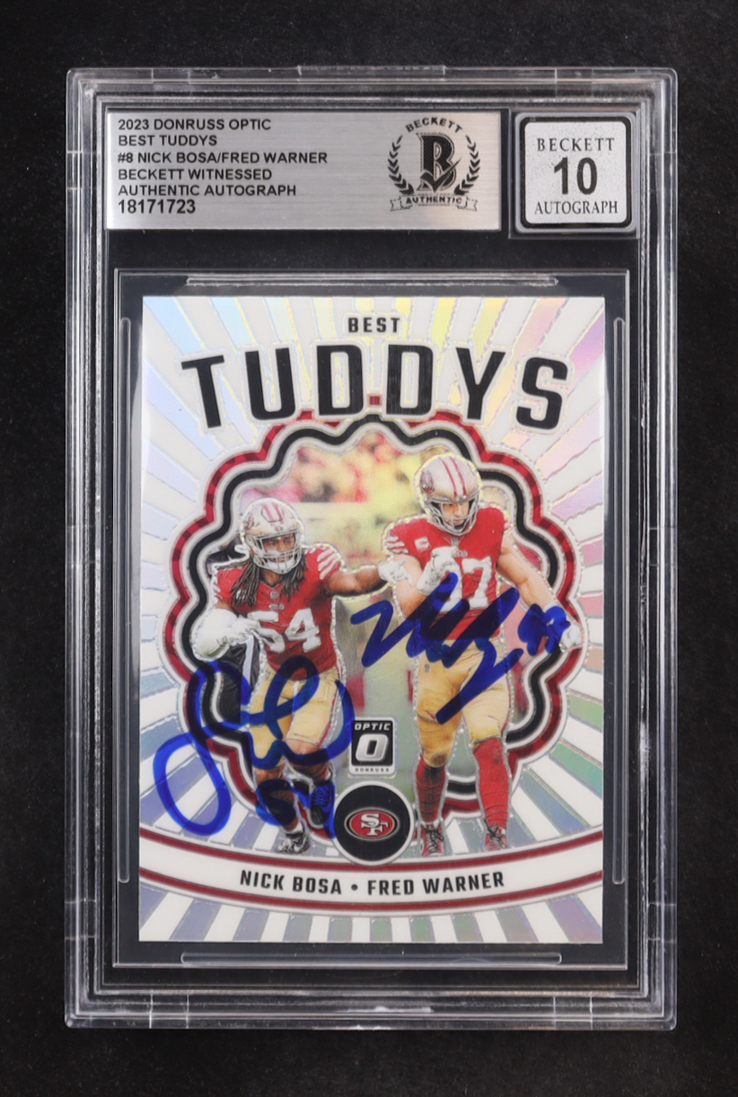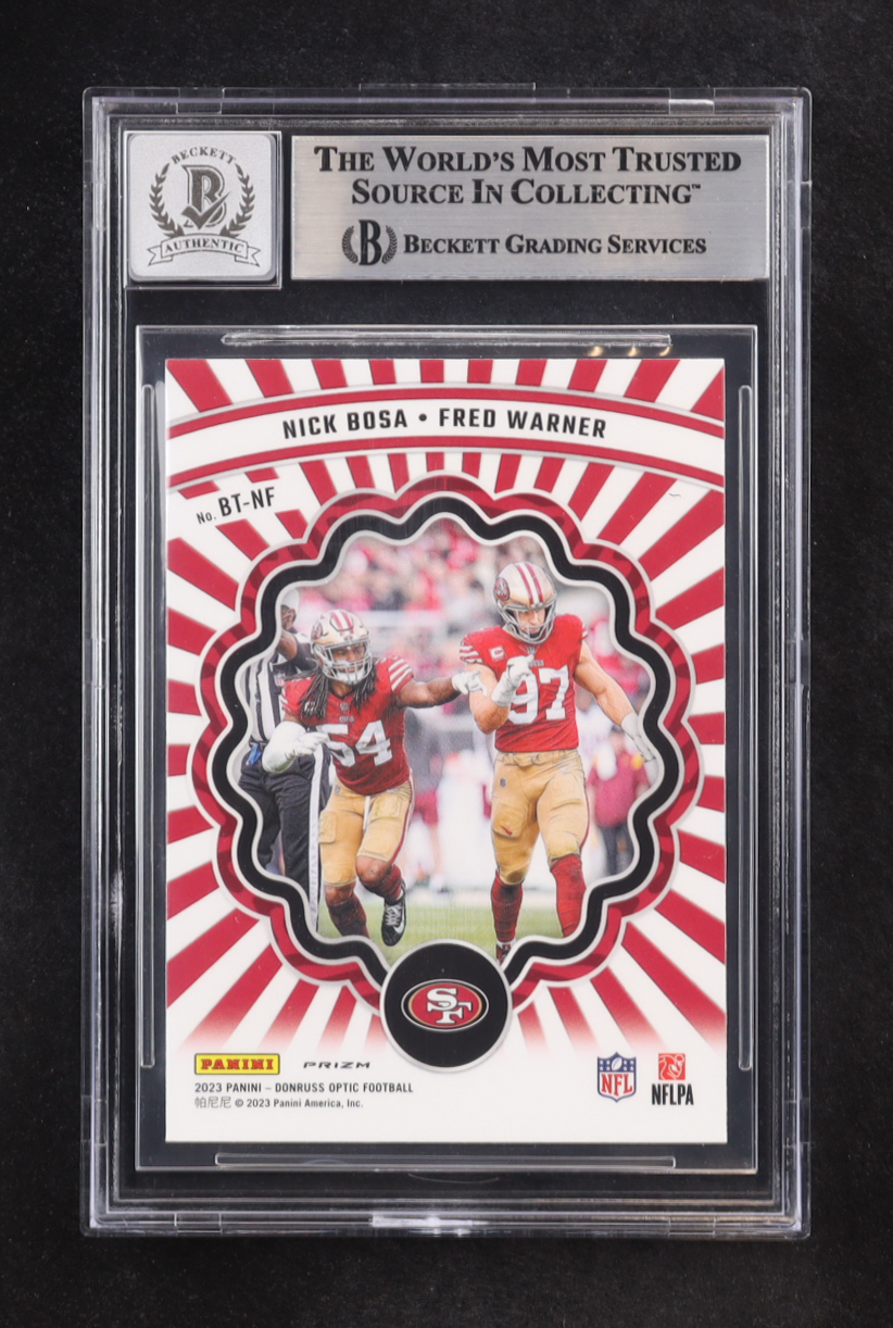 Nick Bosa / Fred Warner Signed 2023 Panini Donruss Optic Best Tuddys Prizm #BT-NF (BGS | Autograph Graded BGS 10)