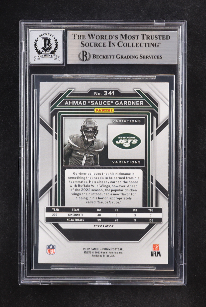 Ahmad "Sauce" Gardner Signed 2022 Panini Prizm Variations Silver #341 RC (BGS | Autograph Graded BGS 10)