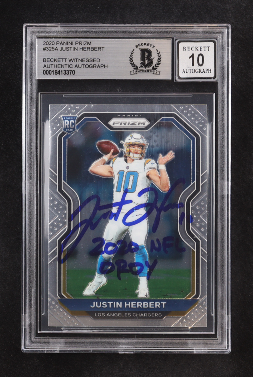 Justin Herbert Signed 2020 Inscribed "2020 NFL OROY" Panini Prizm #325A RC (BGS | Autograph Graded BGS 10)