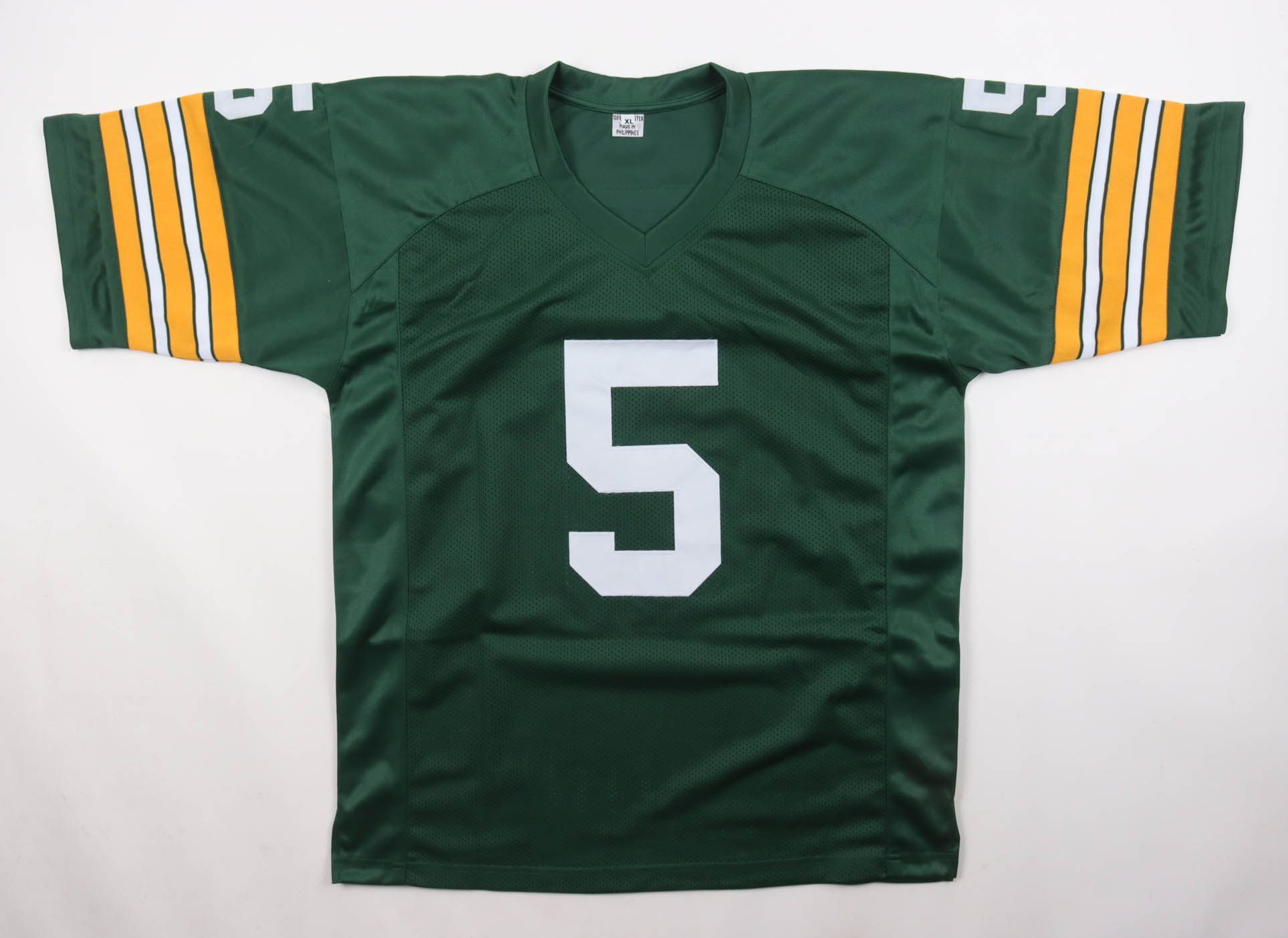 Custom jersey with everything sewn on, size XL. Hand-signed and inscribed by Paul Hornung (D. 2020, HOF).