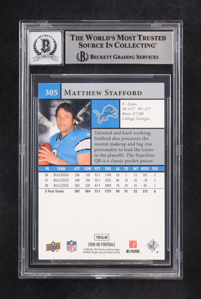 Matthew Stafford Signed 2009 Upper Deck Star Rookie #305 RC (BGS | Autograph Graded BGS 10)