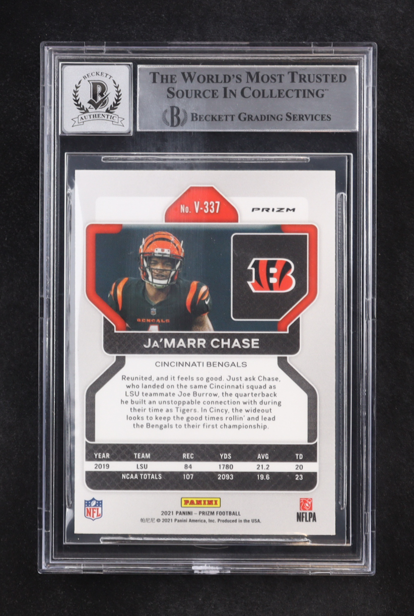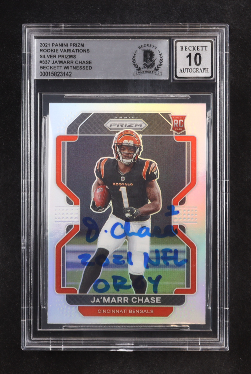 Ja'Marr Chase Signed 2021 Inscribed "2021 NFL OROY" Panini Prizm Rookie Variations Silver #V-337 RC (BGS | Autograph Graded BGS 10)