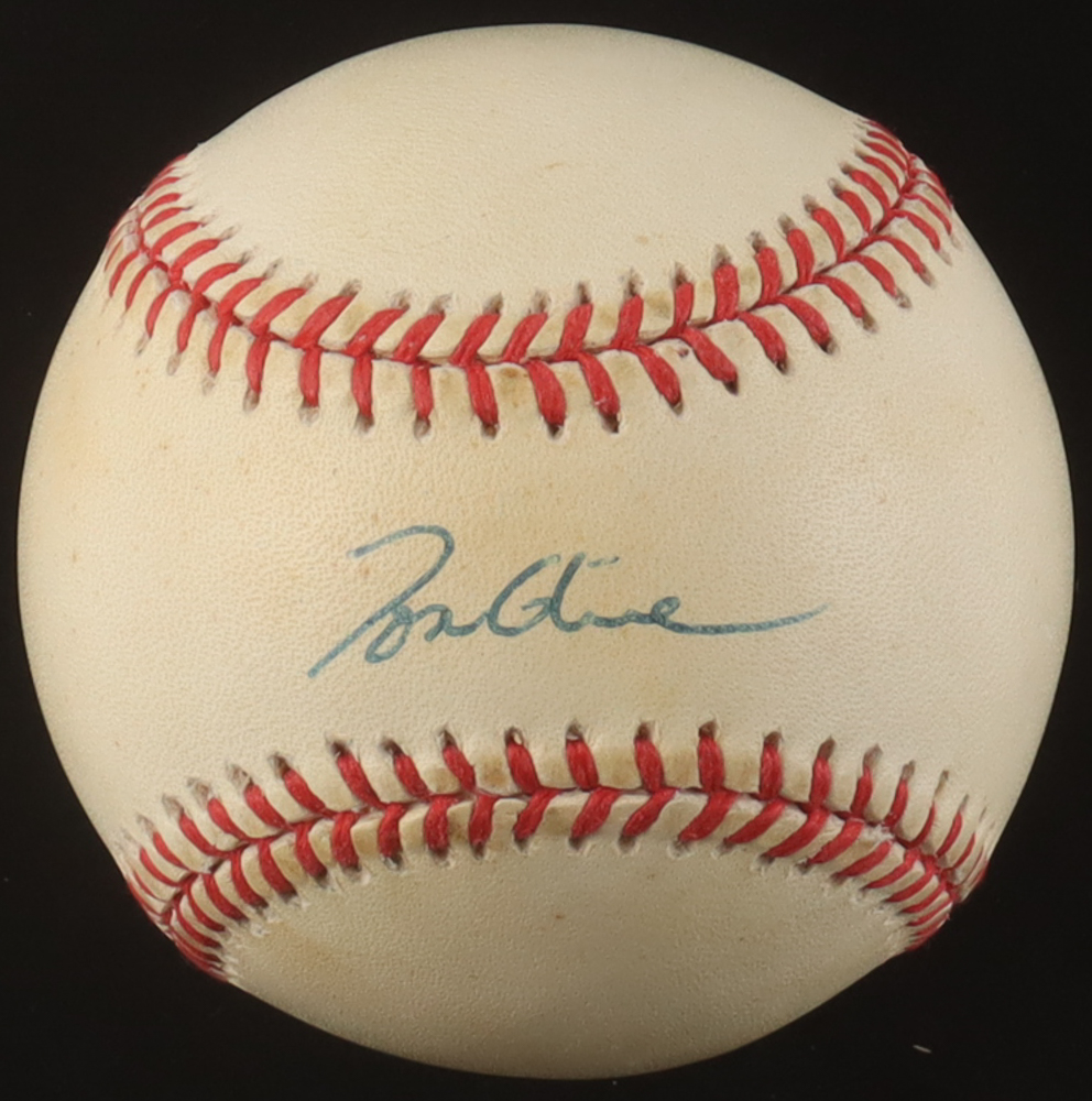 Rawlings Official National League Baseball. Hand-signed by Tom Glavine (Atlanta Braves, HOF). Please note, the baseball is naturally toned.
