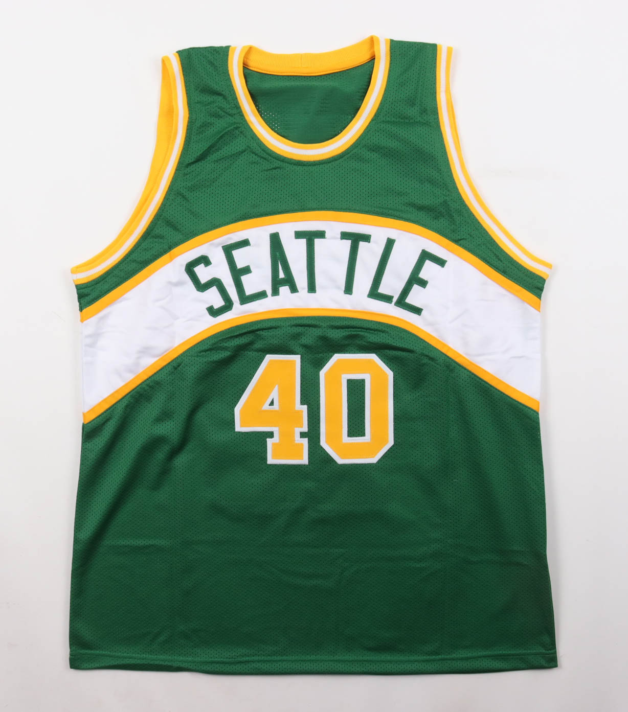 Custom jersey with everything sewn on, size XL. Hand-signed by Shawn Kemp.