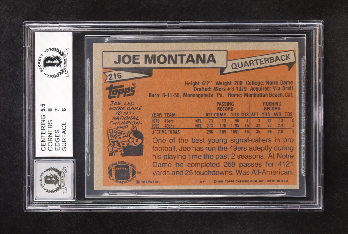 Joe Montana Signed 1981 Topps #216 RC (BAS 6 | Autograph Graded BAS 10)