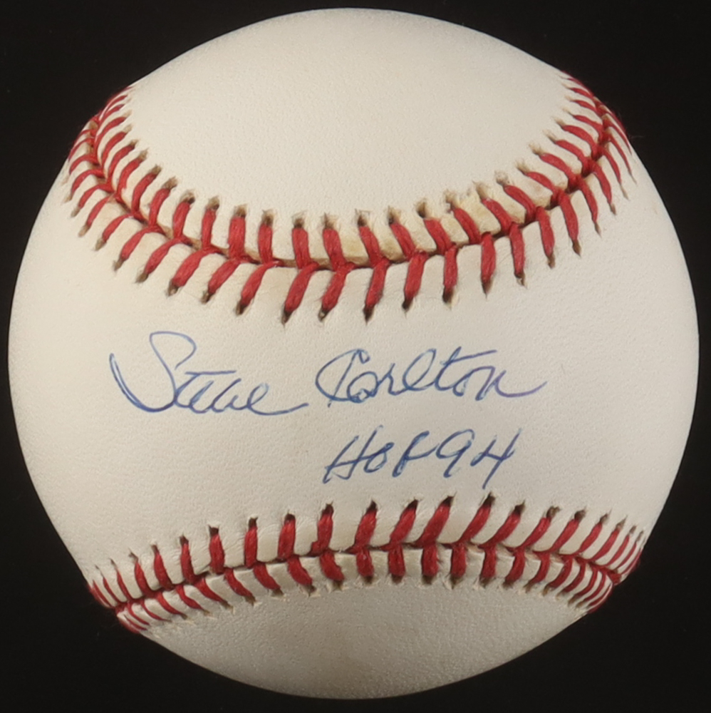 Rawlings Official Major League baseball. Hand-signed and inscribed by Steve Carlton (Philadelphia Phillies, HOF).