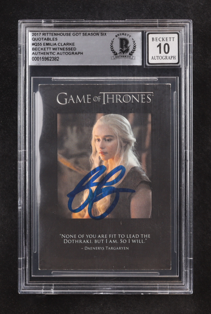 Emilia Clarke Signed 2017 Rittenhouse Game Of Thrones Season Six Quotables #Q55 (BGS | Autograph Graded BGS 10)
