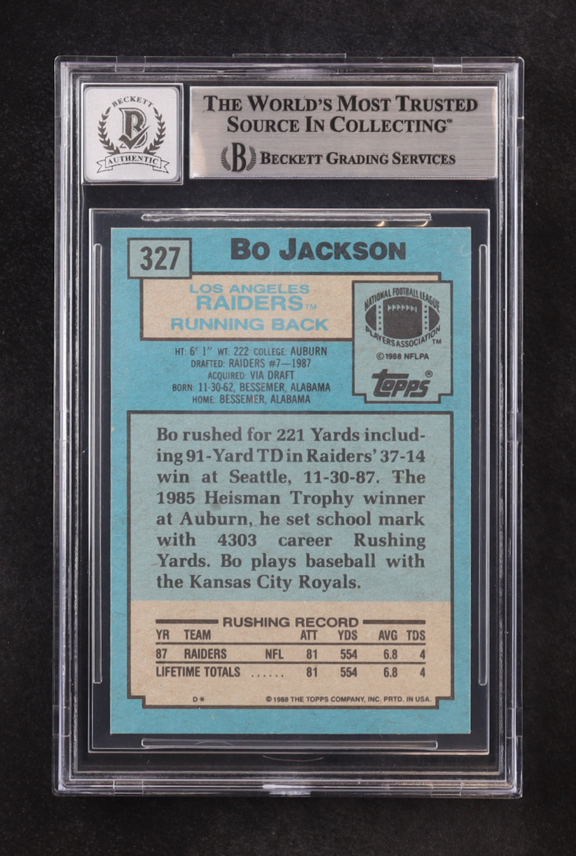 Bo Jackson Sr Signed 1988 Topps Super Rookie #327 RC (BGS | Autograph Graded BGS 10)