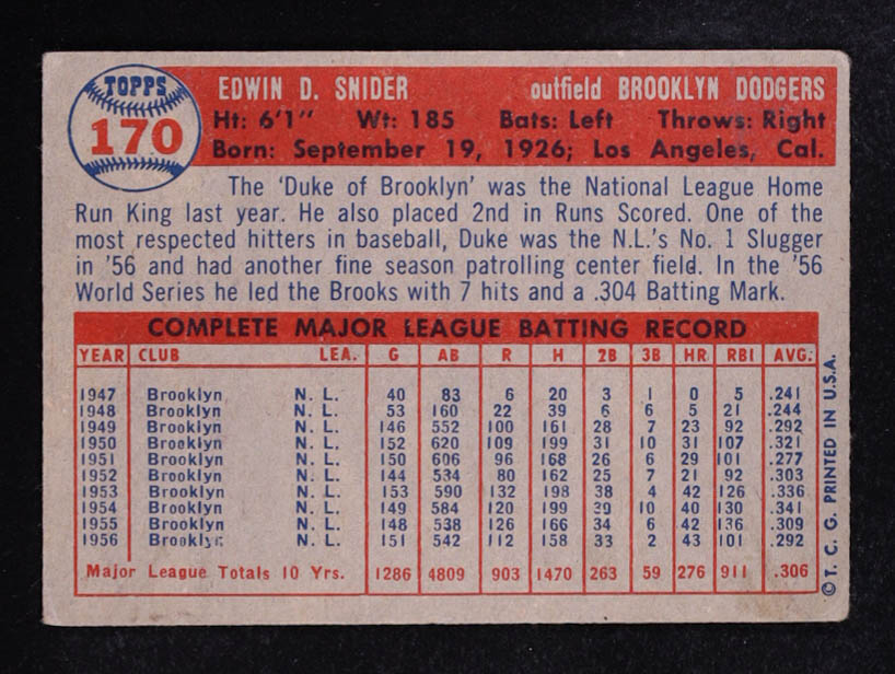 Duke Snider 1957 Topps #170