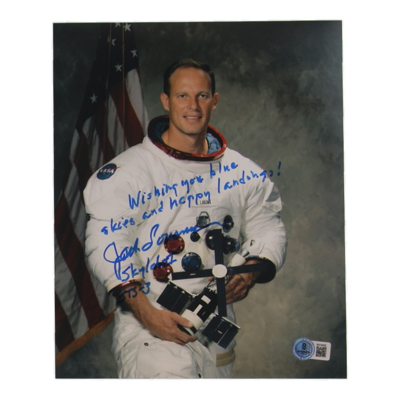 Photo measures 8" x 10" in size and has been hand-signed and inscribed by Jack Lousma.