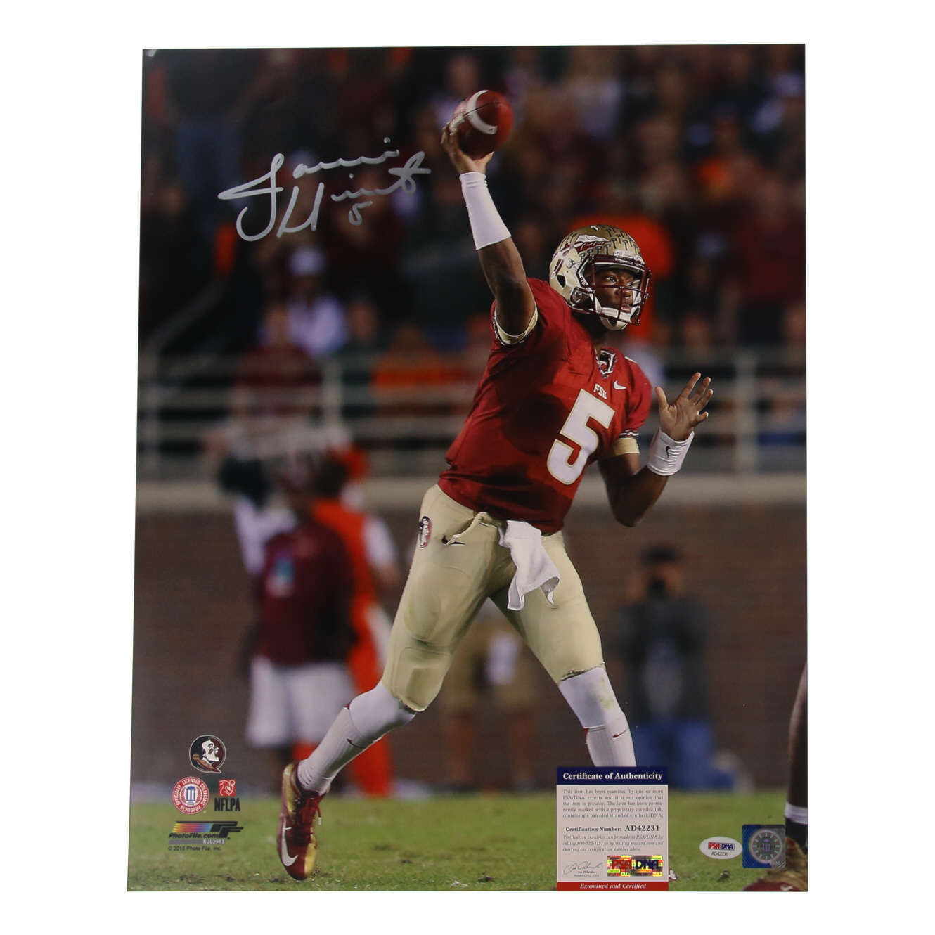 Photo measures 16" x 20" in size. Hand-signed by Jameis Winston.