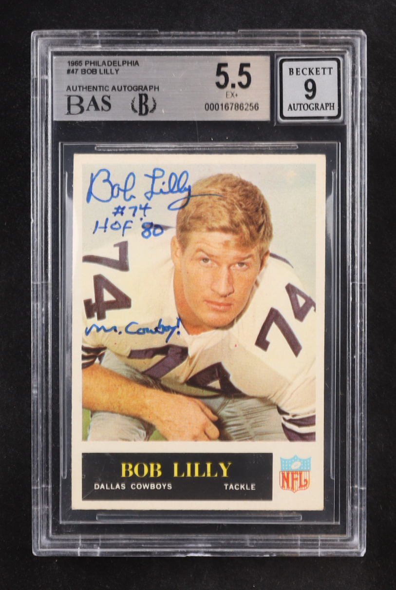 Bob Lilly Signed 1965 Inscribed "HOF 80" "MM Cowboy!" Philadelphia #47 (BGS 5.5 | Autograph Graded BGS 9)