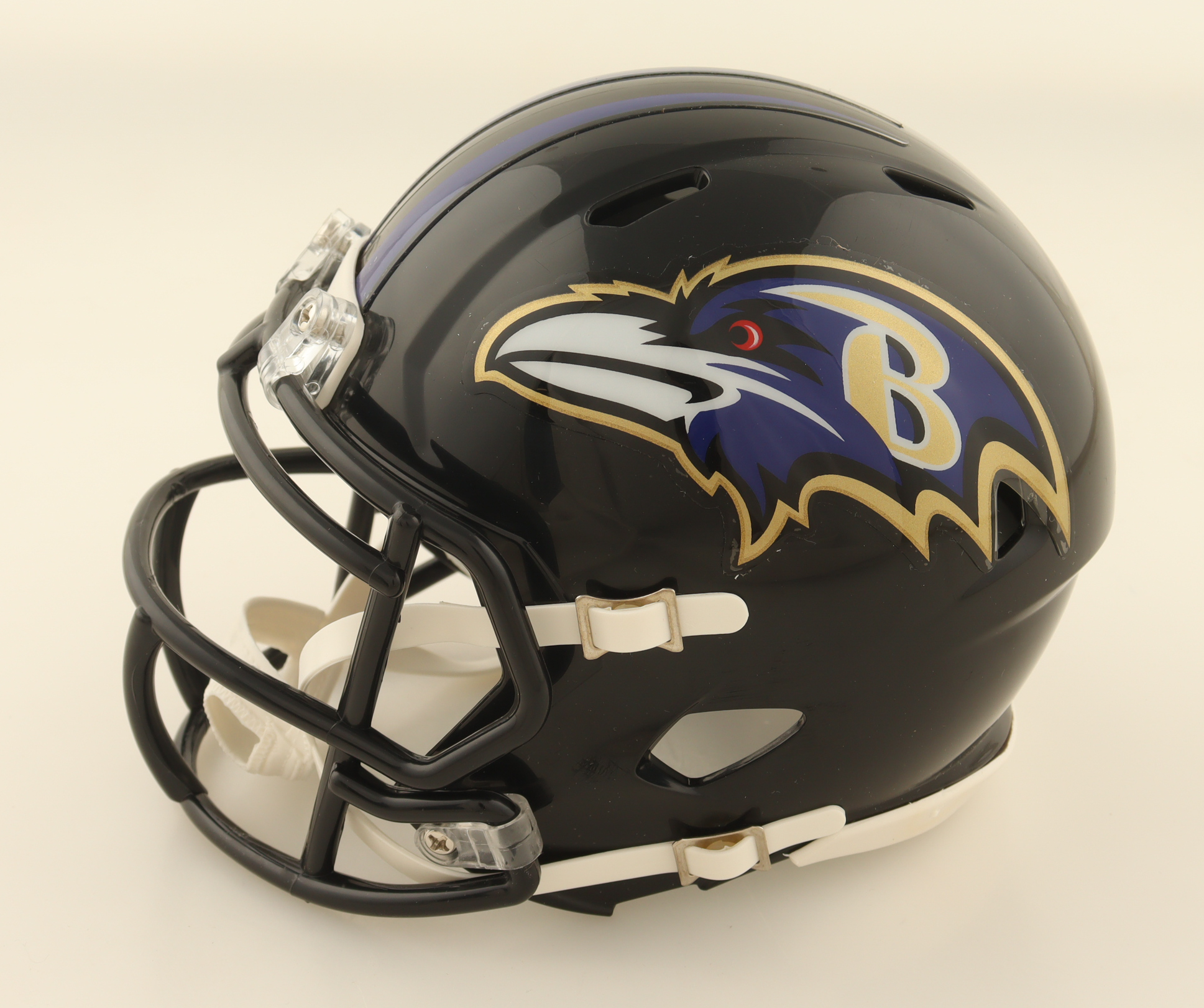 Riddell Baltimore Ravens speed Mini helmet has been hand-signed by Jermaine Lewis.