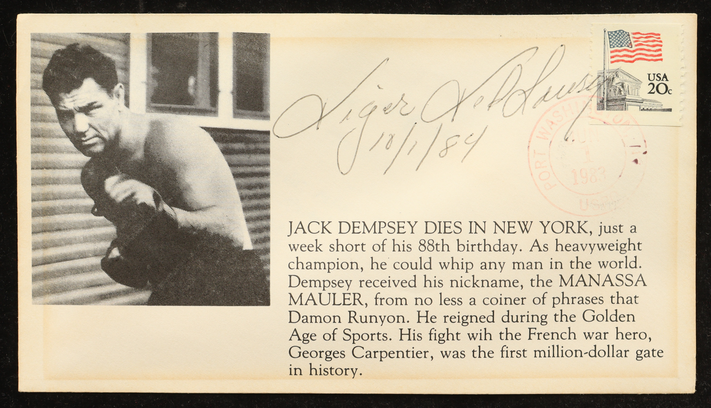"Tiger" Ted Lowry Signed 1983 Jack Dempsey Commemorative Envelope Inscribed "10/1/84" (Beckett)