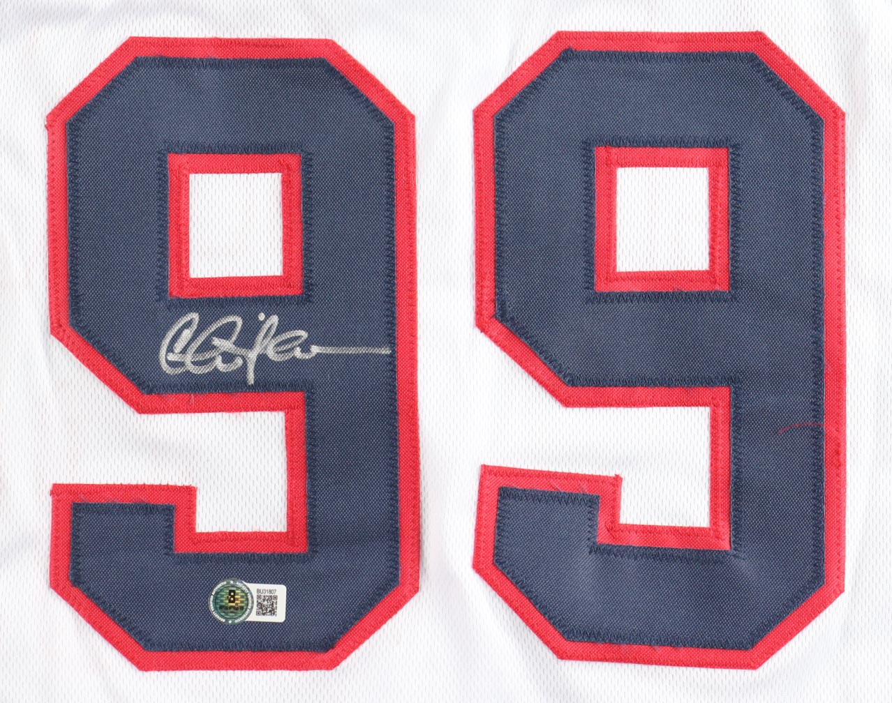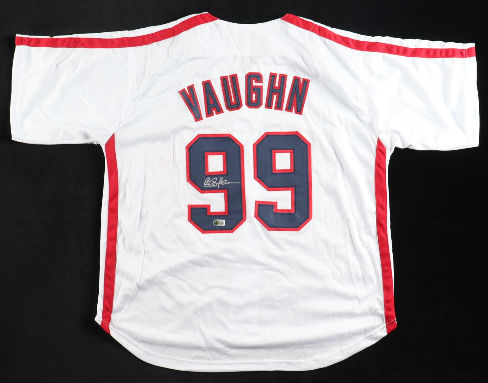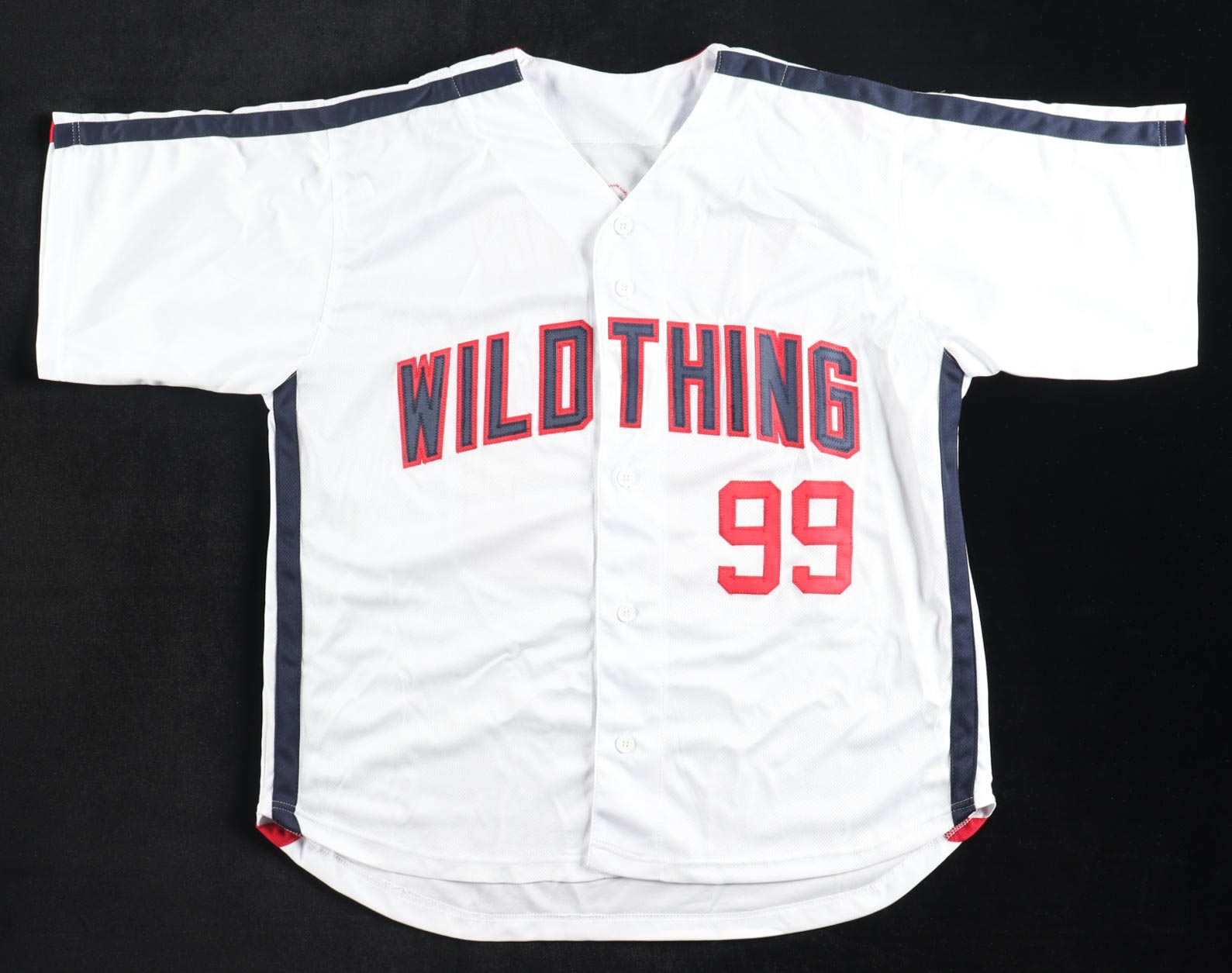 Custom jersey. Everything is sewn on, size XL. Hand-signed by Charlie Sheen (Ricky "Wild Thing" Vaughn).
