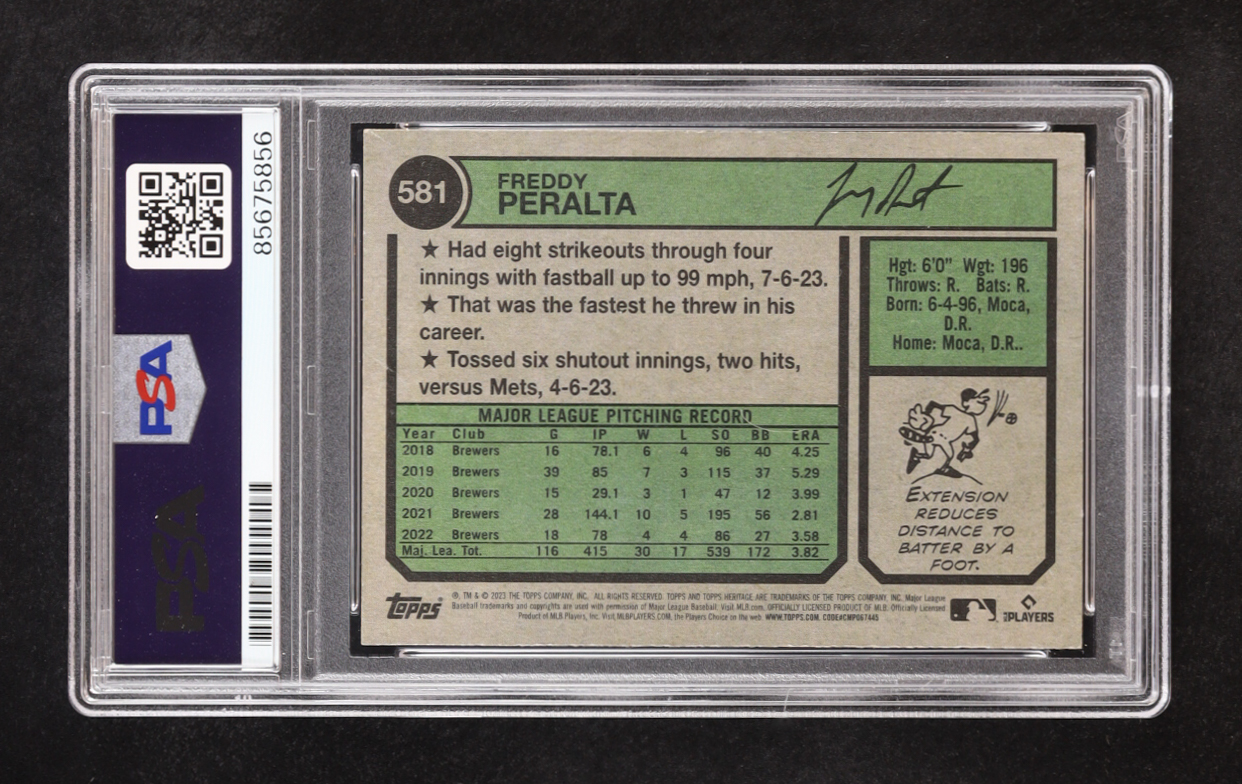 Freddy Peralta Signed 2023 Topps #581 (PSA)